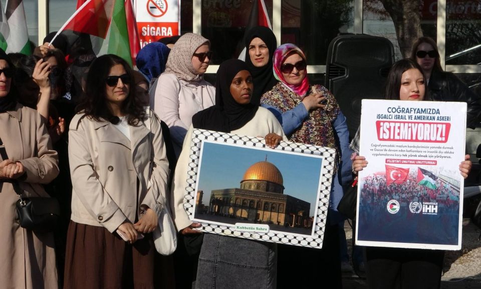 Çanakkale'de İsrail'in Filistin'e yönelik saldırısına yönelik protesto gerçekleşti. Basın açıklamasını gerçekleştiren Dr. Öğretim Üyesi Ufuk Necat Taşçı, "Şu ana kadar şehit edilen Filistinlilerin 21 bininden fazlası çocuk, bunların 450'si bebek, bin 29'u 1 yaş altında, 5 bin 31'i 5 yaş altında, toplam yaralı sayısının 170 bin üzerinde olduğunu biliyoruz. Yaralıların da 45 bininin çocuklardan oluştuğunu görüyoruz. İsrail saldırıları sonucu yaralanan çocukların 10 bin 500'ü kalıcı sakatlık yaşadılar. Aynı şekilde binden fazlası uzuv kaybı yaşadı. Gazze'de sağlık sistemi sistematik olarak hedef alındı ve soykırım amacı olarak İsrail tarafından sağlık, hastaneler, sivil altyapılar aktif bir şekilde kullanıldı. Bugün, sağlık sisteminin tamamen çökme noktasına geldiği görece ateşkese rağmen katil İsrail'in çocukları, kadınları hedef almaya devam ettiği bir süreçteyiz. Bu kırılgan ateşkes sürecinin içerisinde, İsrail'in ihlal ettiği kırılgan ateşkes sürecinde 4 bin çocuğun canları hala hazırda çok büyük risk altında. Gazze şeridinde 58 binden fazla çocuk, İsrail'in katliamı sonrasında ebeveynlerinden en az birini kaybetmiş durumda. Birleşmiş Milletler'in raporu sadece Şubat 2026'da 3 bin 700'den fazla çocuğun yetersiz beslenme nedeniyle hastaneye yatırıldığını ortaya koyuyor. Bunlardan 600'den fazla çocuk ağır yetersiz beslenme nedeniyle ve uzun vadeli gelişim riski gibi hastalıklarla yüzleşmek durumunda. Gazze'de çocukların yüzde 64'ü günde 2 veya daha az besin grubuna erişebilirken yüzde 90'dan fazlası yeterli derecede çeşitli besinlerle beslenememekte. Gazze'de 2026 yılı tahminlerine göre 37 bin hamile ve emziren kadın, 25 bin bebek, 101 bin 5 yaş 6 çocuk, 120 bin 5-17 yaş arası çocuk acil beslenme desteğine muhtaç durumda. Birleşmiş Milletler'in kendi raporlarına göre 100 okul direkt olarak İsrail tarafından hedef alındı. Öğretim yılına başlamış olan 700 bin öğrencinin eğitim hakkından eksik kaldığı ve 39 bin öğrencinin ise lise bitirme sınavlarına dahi giremediği günlerden geçiyoruz" dedi.
