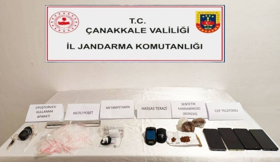 İcra edilen operasyon aramalarda; 762 gr Sentetik Kannabinoid (Bonzai), 2 gr Satışa Hazır Fişeklenmiş Sentetik Kannabinoid (Bonzai), 25 gr Sentetik Kannabinoid Hammadde, 10 gr Metamfetamin, 150 Adet Sentetik Ecza, 7 Adet Uyuşturucu Kullanma Aparatı(Payp), 1 Adet Hassas Terazi, 400 ml Aseton, 1 Adet Manuel Sigara Sarma Makinesi, 195 Adet Sentetik Kannabinoid (Bonzai) Fişekleme/Paketlemede Kullanılan Kilitli Poşet, 1 Adet Sentetik Kannabinoid (Bonzai) Fişekleme/Paketlemede Kullanılan Rulo Jelatin, 6 Adet Cep Telefonu, 5700 TL Suç Geliri Para ele geçirildi.