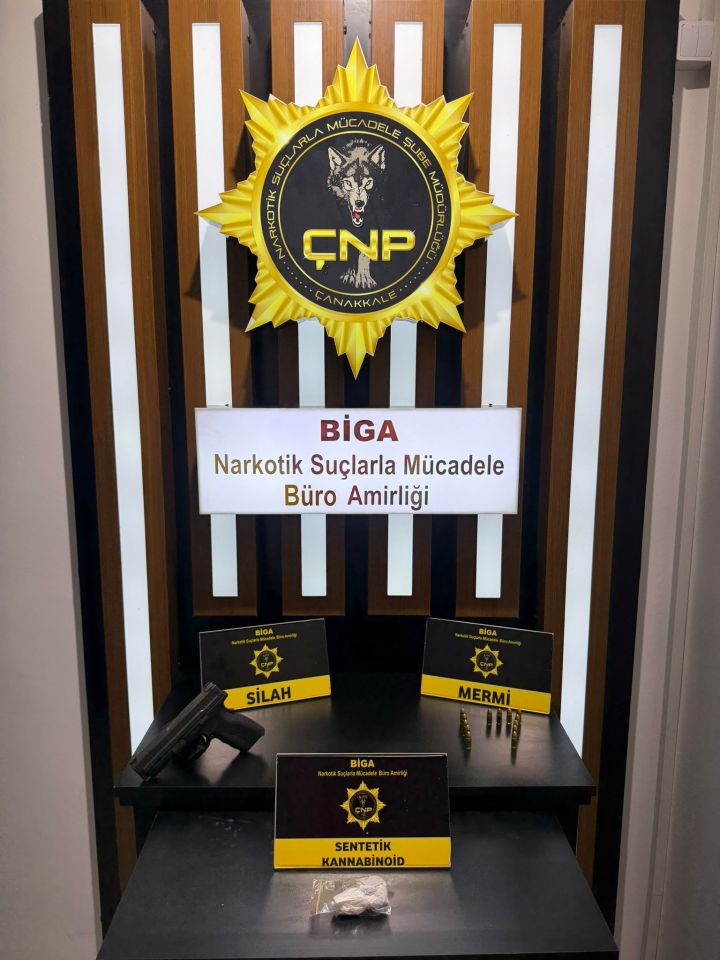 Toplamda; 26,91 gr narkotik madde, 148 adet uyuşturucu hap ve bir adet ruhsatsız tabanca ile 13 adet fişek ele geçirildi.