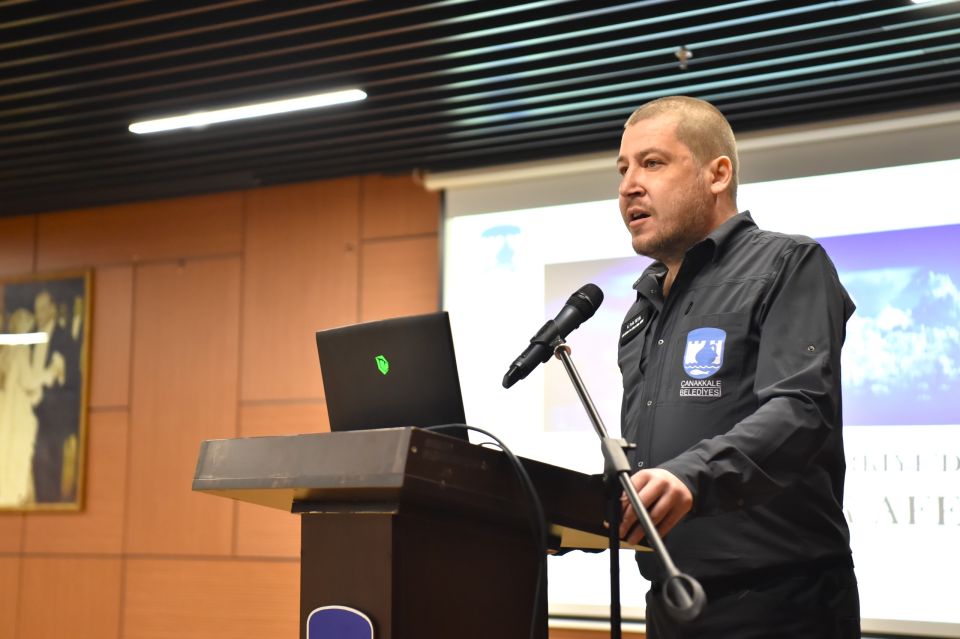 Çanakkale Belediyesi Afet İşleri ve Risk Yönetimi Müdürü Kadri Faik Tetik’in moderatörlüğünü üstlendiği oturumda ilk sözü Erdinç Uslan aldı. "Dünya Üzerinde Meydana Gelen Meteorolojik Kökenli Afetler" başlıklı sunumunu yapan Uslan, küresel boyuttaki gelişmeler ve meteorolojik afetlerin karakteristik özellikleri hakkında teknik bilgiler paylaştı.