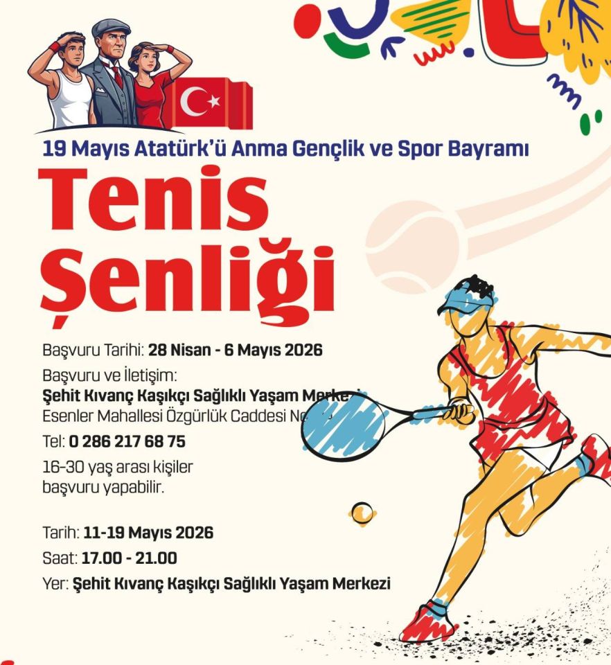 Çanakkale Belediyesi Mayıs 2026 Kültür-Sanat etkinlikleri kapsamında düzenlenecek olan 19 Mayıs Atatürk'ü Anma, Gençlik ve Spor Bayramı Tenis Şenliği için başvuruların başladığı duyuruldu.