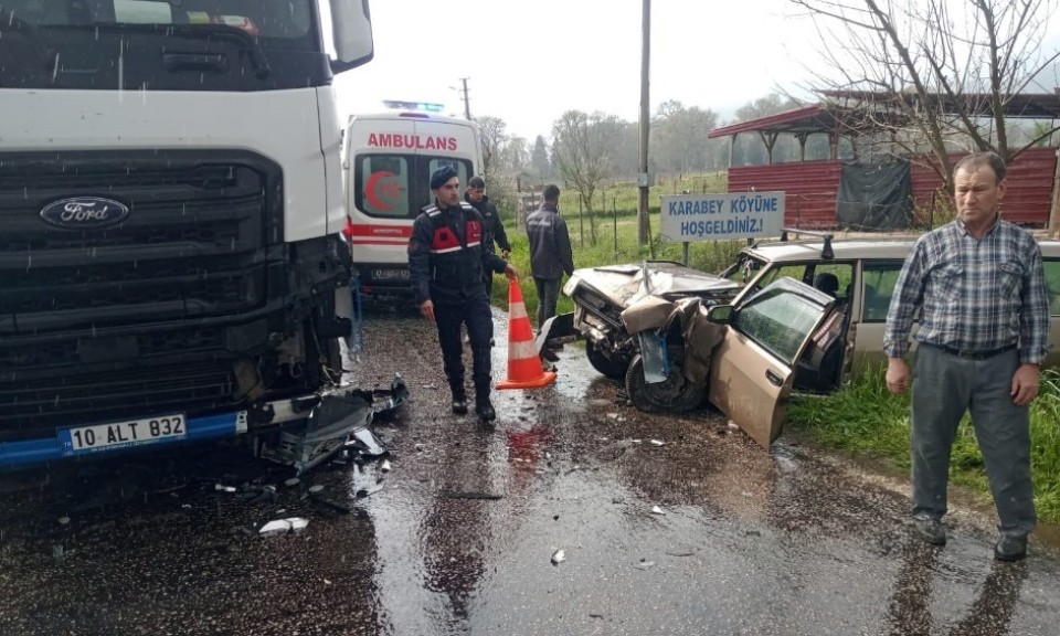 Kaza, saat 15.45 sıralarında Yenice ilçesine bağlı Karabey köyü girişinde meydana geldi. Adem Ç. idaresindeki 10 D 4682 plakalı otomobil, sürücüsünün ismi öğrenilmeyen 10 ALT 832 plakalı tır ile çarpıştı. Kazayı gören diğer sürücüler durumu jandarma ve sağlık ekiplerine bildirdi. Olay yerine gelen sağlık ekiplerinin müdahale ettiği yaralı otomobil sürücüsü Adem Ç., ambulansla Yenice Devlet Hastanesine kaldırıldı. Yaralının hayati tehlikesinin bulunmadığı öğrenildi. Jandarma kazayla ilgili inceleme başlattı.