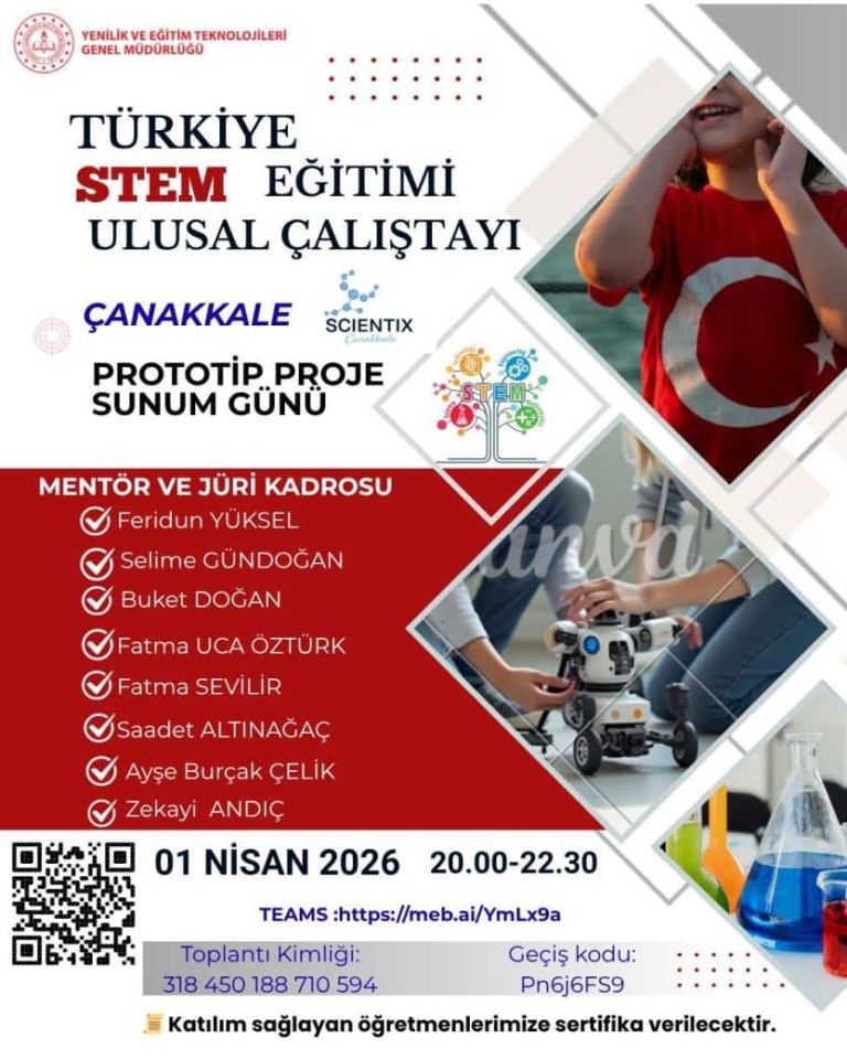 Çanakkale, eğitimde dijital dönüşüm ve üretim temelli öğrenme anlayışının öne çıktığı önemli bir organizasyona ev sahipliği yaptı. T.C. Millî Eğitim Bakanlığı Yenilik ve Eğitim Teknolojileri Genel Müdürlüğü koordinasyonunda, Türkiye STEM yapılanması kapsamında 23 Mart - 1 Nisan 2026 tarihleri arasında düzenlenen Türkiye STEM Eğitimi Ulusal Çevrim İçi Çalıştayı, yoğun katılım ve yüksek etkileşimle tamamlandı.