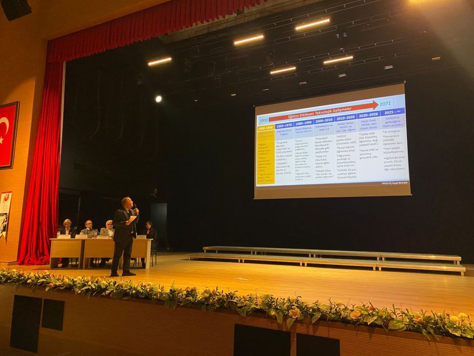 Dr. Öğr. Üyesi Mustafa Aydın Başar, eğitim fakültelerinin gelişimi ile birlikte yapay zekâ ve robotların gelecekteki eğitim süreçlerindeki rolüne ilişkin sunum gerçekleştirdi.