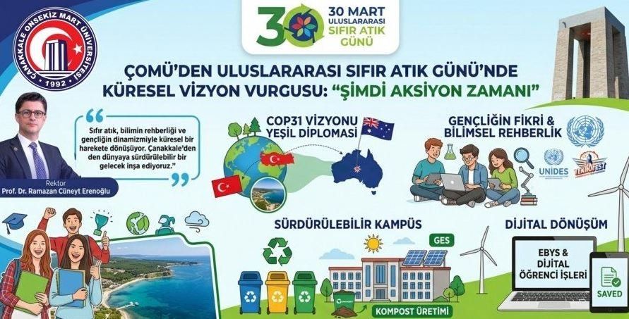 Çanakkale Onsekiz Mart Üniversitesi (ÇOMÜ), 30 Mart Uluslararası Sıfır Atık Günü’nde sürdürülebilirlik çıtasını zirveye taşıdı. Sıfır atık hareketini akademik bir sorumluluğun ötesine taşıyarak bir yaşam kültürü haline getiren üniversite, Türkiye’nin COP31 hedefleriyle stratejik bir bağ kurarak yeşil dönüşümde öncü rol üstlendiğini bir kez daha kanıtladı. ÇOMÜ bünyesinde kurulan COP31 Koordinasyon Kurulu ile iklim değişikliğinden yenilenebilir enerjiye kadar pek çok alanda disiplinlerarası projeler hayata geçiriliyor.