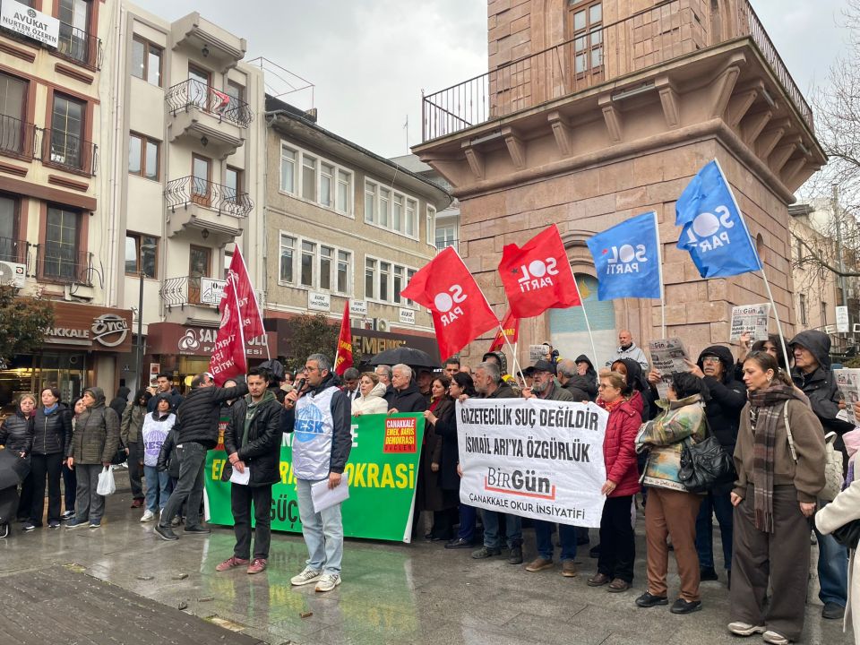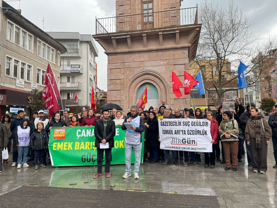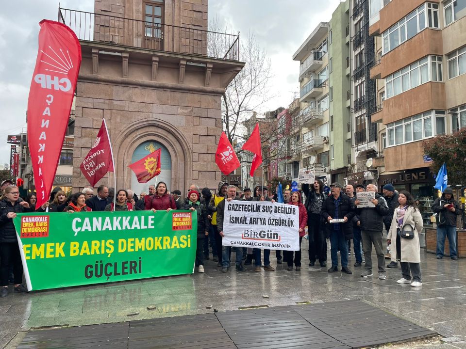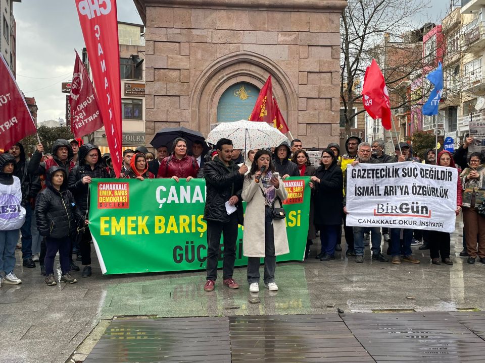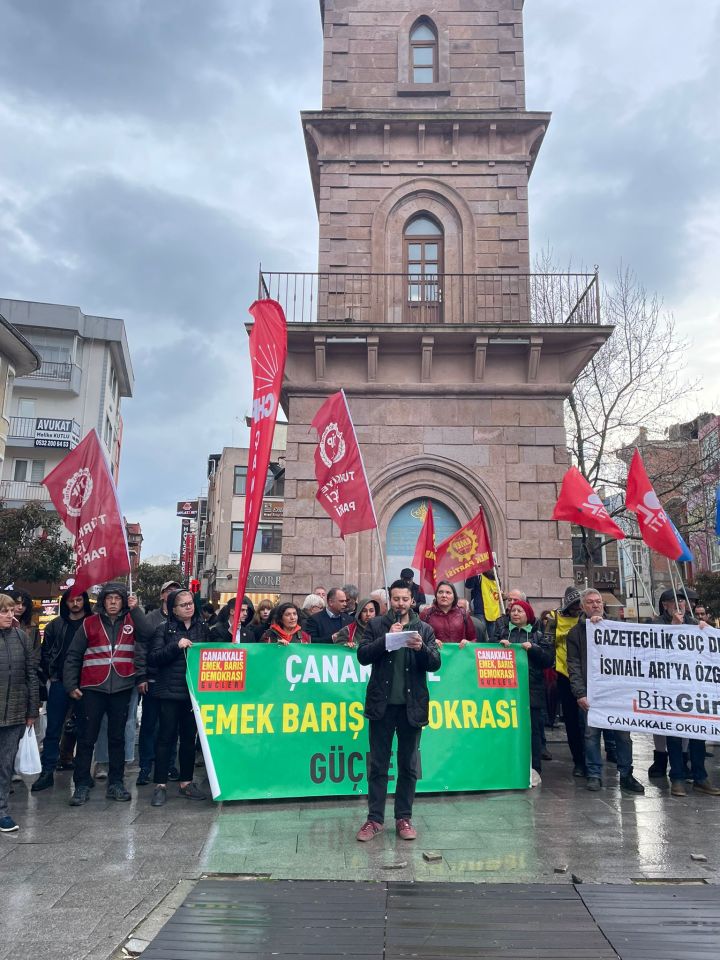 Platform paydaşlarının yanı sıra CHP Genel Başkanı Özgür Özel'in yarınki mitingi öncesi ilimizde bulunan CHP Parti Meclisi üyeleri ile CHP Kadın Kolları Genel Başkanı Asu Kaya, CHP Çanakkale Milletvekilleri İsmet Güneşhan ile Özgür Ceylan'ın da katıldığı açıklamada gazeteciler Merdan Yanardağ, Alican Uludağ, Birgün Gazetesi muhabiri İsmail Arı ile BİRTEK-Sen Genel Başkanı Mehmet Türkmen'in tutuklanmalarına tepki gösterildi.