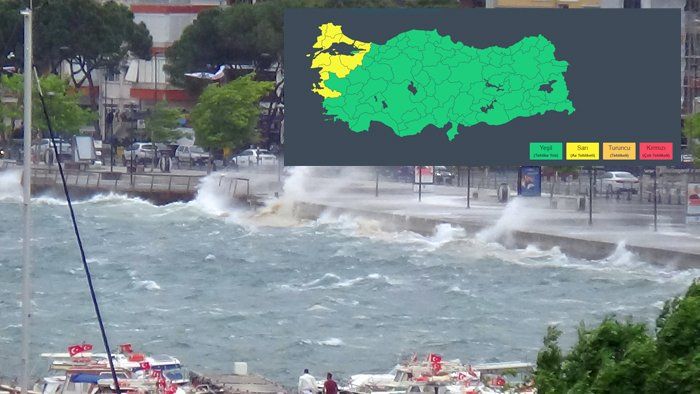 Meteoroloji Genel Müdürlüğü’nün hava tahmin haritasında Çanakkale ile birlikte İstanbul, İzmir, Bursa, Kocaeli, Balıkesir, Edirne, Kırklareli ve Tekirdağ illeri için ‘sarı’ kodlu uyarı yayımlandı. ‘Sarı’ alarm, hava olaylarının potansiyel tehlike oluşturabileceği anlamına geliyor.