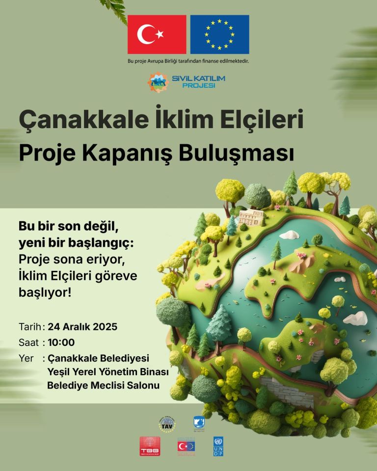 Birleşmiş Milletler Kalkınma Programı (UNDP) tarafından desteklenen proje; Türkiye Avrupa Vakfı ve Çanakkale Belediyesi iş birliğiyle başarıyla yürütüldü. Proje kapsamında oluşturulan İklim Eylem Grubu ve İklim Elçileri’nin çalışmaları, kentin çevre stratejilerine katkı sunmayı hedefledi.