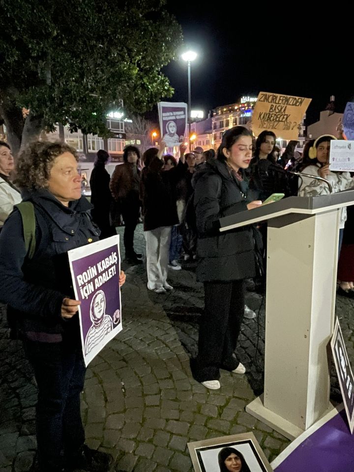 27 Eylül 2024'te kaldığı KYK yurdundan çıktıktan sonra 18 gün boyunca kendisinden haber alınamayan ve cansız bedeni Van gölü kıyısında bulunan Van Yüzüncü Yıl Üniversitesi öğrencisi 21 yaşındaki Rojin Kabaiş'in ölümünün aydınlatılmasının istendiği açıklamada kadınların yaşam hakkının korunması için herkesin görevini yerine getirilmesi ve Rojin Kabaiş'in ailesine hukuki ve manevi destek verilmesi talep edildi.
