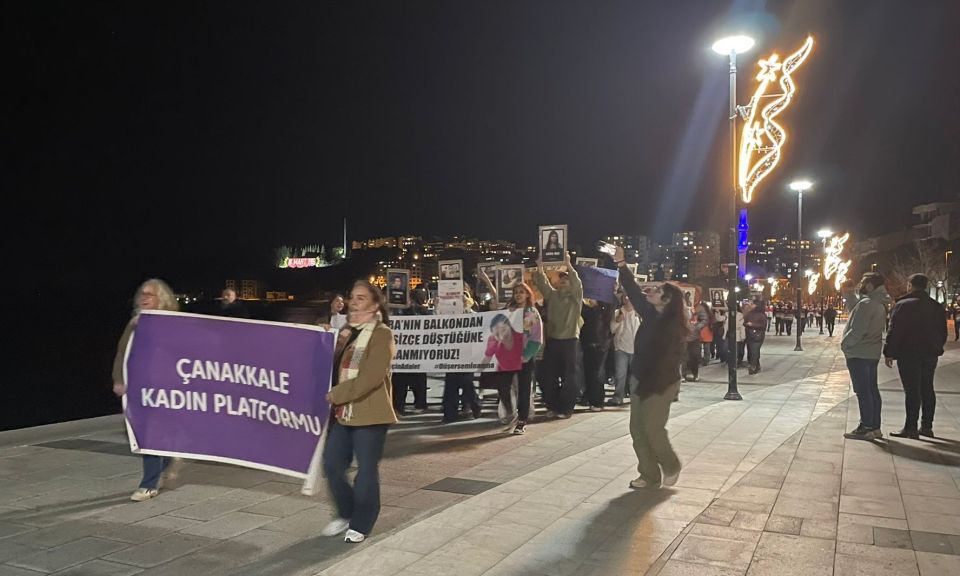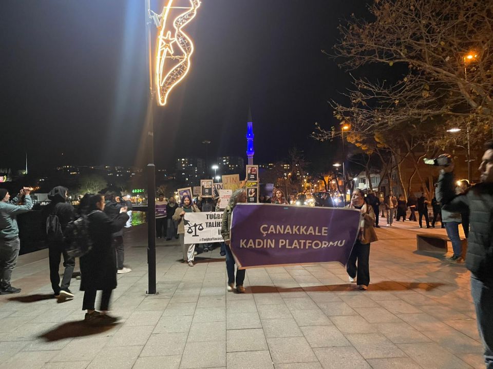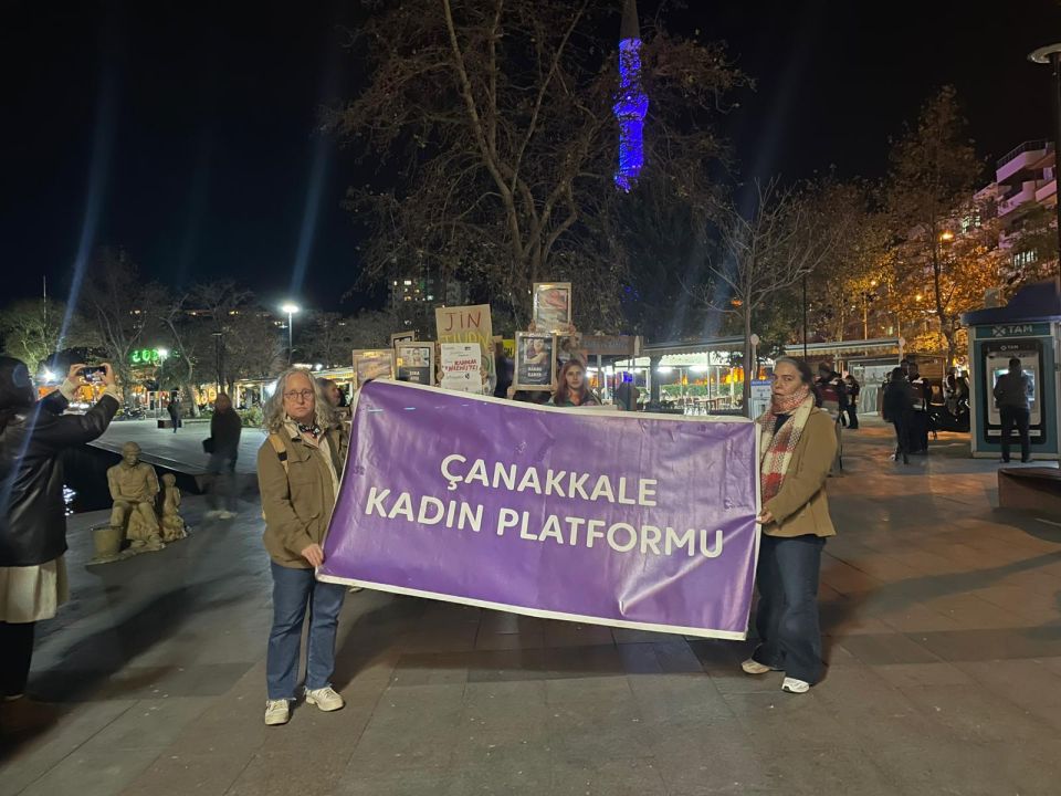 Çanakkale Kadın Platformu üyeleri, 25 Kasım Kadına Yönelik Şiddetle Mücadele Günü dolayısıyla dün akşam Golf Çay Bahçesi önünden başlayan yürüyüş ve İskele Meydanındaki Manolya Ağacının altında bir basın açıklaması gerçekleştirdi.