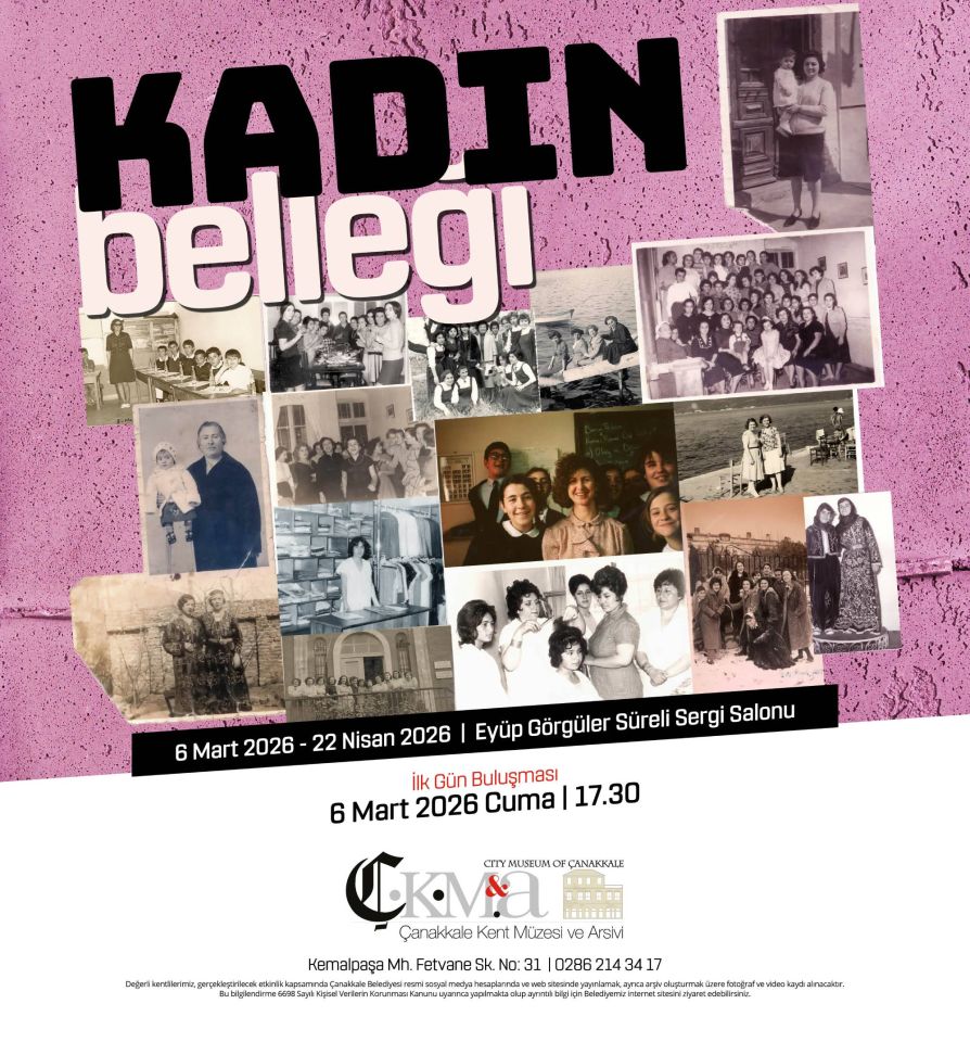 Kadınların kentin gündelik yaşam içindeki varlığını, kurduğu düzen ve kamusal hayattaki yerini bir araya getiren ve müze arşivinde yer alan bağış fotoğraflarından oluşturulan “Kadın Belleği” isimli serginin açılışı 6 Mart 2026 Cuma günü saat 17.30'da Çanakkale Kent Müzesi ve Arşivi Eyüp Görgüler Süreli Sergi Salonu'nda yapılacak.