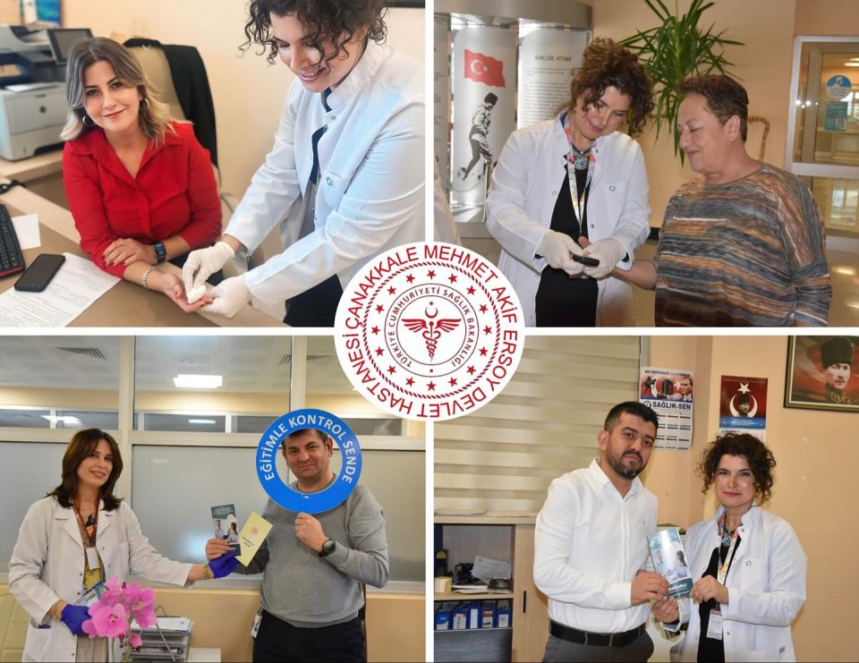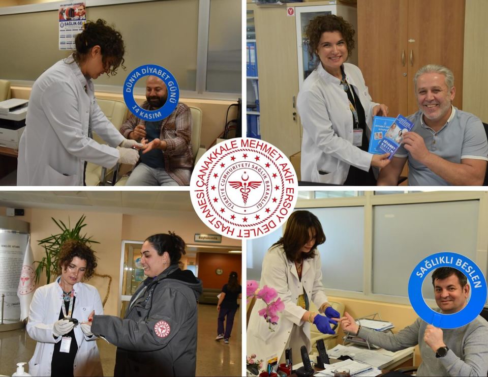 Bu kapsamda, Diyabet Eğitim Hemşireleri tarafından Çanakkale Mehmet Akif Ersoy Devlet Hastanesi çalışanları ve idari personele yönelik farkındalık etkinliği gerçekleştirildi.