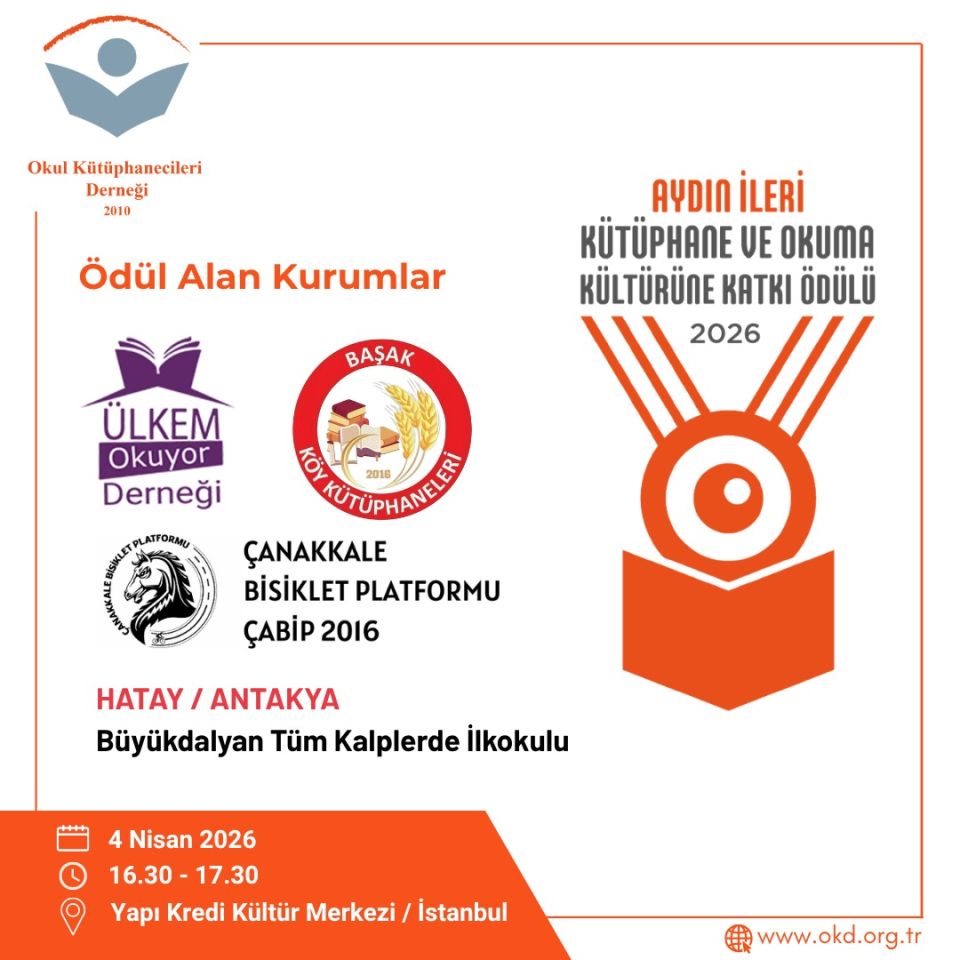 “Okul Kütüphanecileri Derneği tarafından 62. Kütüphane Haftası kapsamında düzenlenecek törende, Çanakkale Bisiklet Platformu “Kitaplar Pedallıyor” projemiz ile ödüle layık görülmenin onurunu yaşıyoruz.