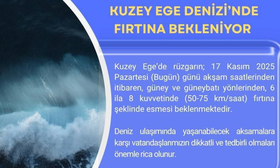 "Kuzey Ege'de rüzgarın; 17 Kasım 2025 Pazartesi (Bugün) günü