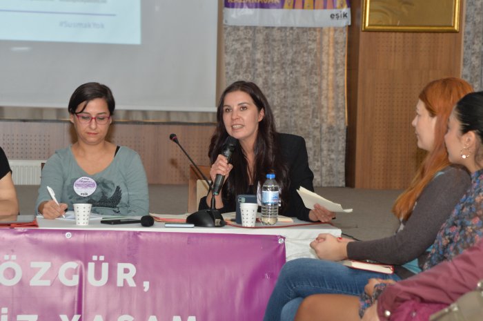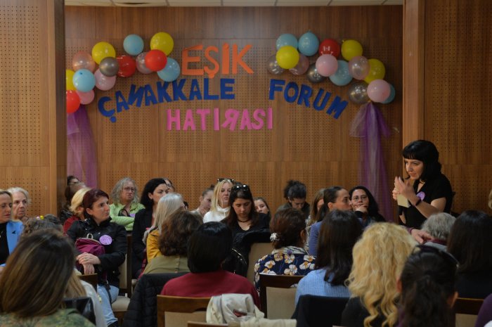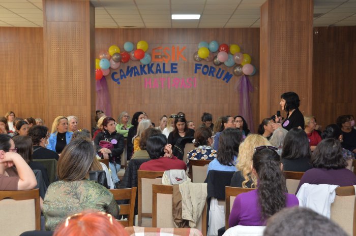 Eşitlik İçin Kadın Platformu (EŞİK), kadınların öncelikli beş talebini yükseltmek amacıyla başladığı EŞİK Forumlarının 5`incisini Çanakkale`de gerçekleştirdi. Çanakkale Belediyesi Sarıçay Sosyal Tesisleri Ercan Adsız Salonu`nda düzenlenen foruma Çanakkaleli kadınların ilgisi oldukça yüksek oldu. Son dönemlerde, Çanakkale`de en kalabalık kadın buluşmasına ev sahipliği yapan forumda kadınlar eşitlik ve şiddetsiz bir dünya taleplerini bir kez daha haykırdı. Eşit ve şiddetsiz bir toplum mücadelesi için; siyasi parti ve demokratik kitle örgütleri temsilcileri, üyeleri ve bağımsız kadınlar yan yana geldi. İlk oturumu basına açık düzenlenen forumun ikinci oturumunda ise kadınlar kendi deneyimlerini aktaracakları için basına kapalı devam etti. Av. İnci İncesağır ve Av. Ezgi Deniz Ünsal`ın moderatörlüğünü üstlendiği forumun konuşmacıları ise Fidan Ataselim ve Gökçeçiçek Ayata oldu. EŞİK, talepleri ise şu şekilde; "Eşit yurttaşlık hakkımızı aşındırmaktan vazgeçin. Kazanılmış haklarımızı tehdit eden söylem ve girişimlere son verin. Evde, işte, sokakta, tüm toplumsal yaşamda şiddetsiz bir yaşam sürme hakkımız için acil eylem planı uygulayın. Eğitimi eşitlikçi, ayrımcılıktan uzak, bilimsel, laik, parasız hale getirin. Eşit istihdam, kreş ve işyerinde şiddeti önleme mekanizmaları için etkin politikalar uygulayın."