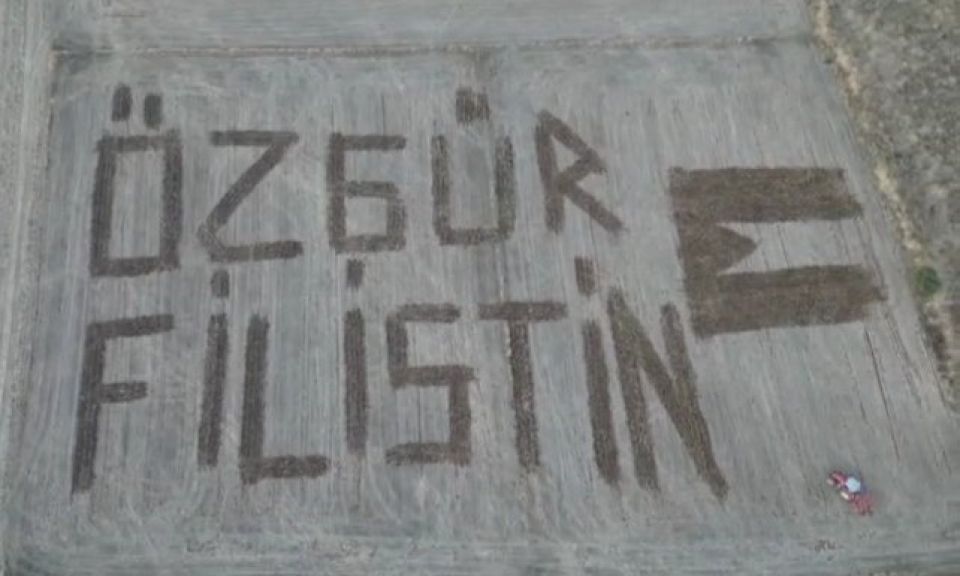 Çanakkale'nin Biga ilçesine bağlı Eskibalıklı köyünde Hüseyin Savaş ve Fikret Savaş kendilerine ait tarlaya Filistin halkına destek vermek için traktörüyle Filistin bayrağı çizerek 'Özgür Filistin' yazdı. Tarlanın dron ile çekilen görüntüsü ise beğeni topladı.