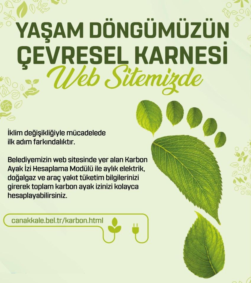 "Çevre bilincinin yaygınlaşması ve iklim dostu uygulamaların artırılması amacıyla çalışmalarını sürdüren Çanakkale Belediyesi, çevreye duyarlı ve sürdürülebilir bir kent yaşamını desteklemek, aynı zamanda farkındalık oluşturmak için önemli bir uygulamayı daha hayata geçirdi. Bu kapsamda, belediyemiz web sitesinde Karbon Ayak İzi Hesaplama Modülü hemşerilerimizin kullanımına sunuldu.