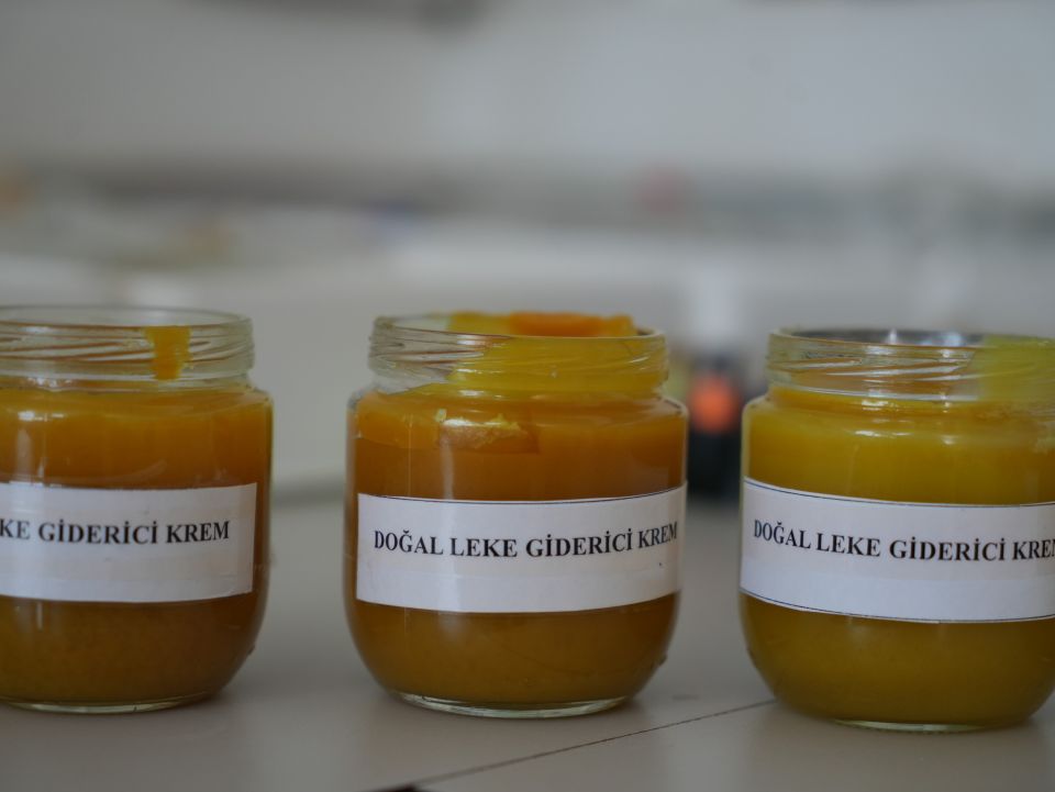 Iğdır Üniversitesi Araştırma Laboratuvarı Uygulama ve Araştırma Merkezi sorumlusu Öğretim Görevlisi Musa Karadağ, Ağrı Dağı florasına özgü bitkilerden katma değeri yüksek ürünler geliştirmeyi amaçladıklarını belirterek, "Üniversitemizin katma değerli ürünler alanında ihtisaslaşması ile beraber biz de tarımsal ve hayvansal ürünlerin bir araya getirilmesi ile katma değeri yüksek kozmetik, endüstriyel, sağlık ve gıda ürünlerine dönüştürülmesini gerçekleştirmekteyiz. Bugün de daha önce üzerine çalıştığımız farklı projelerimizde olduğu gibi bundan da yine hayvansal ve bitkisel ürünlerden yola çıkarak katma değeri yüksek bir leke giderici, doğal leke giderici krem ürettik. Bu kremin ana yapısında sadece Iğdır Üniversitesi'nin 1250 rakamında yetiştiriciliğini yaptığımız arılardan elde ettiğimiz baldan, bal mumundan ve zerdeçal gibi bitkilerin bir araya getirilmesiyle zeytinyağıyla harmanlayarak biz bunu bir katma değerli ürüne dönüştürdük. Gönüllü arkadaşlar üzerinde denemeler yapıldı. Özellikle güneş lekeleri, doğum lekeleri ve işte kansere yol açabilecek birçok lekenin üzerine denendiği ve olumlu etkiler olduğunu gördük. Bu çalışmayı biz biraz daha özenli bir şekilde araştırma çalışması olarak gerçekleştirdik. Bunu tabii ki üniversitemizin bünyesine kazandık. İleriki süreçte bunu daha farklı, daha profesyonel bir şekilde katma değerli ürün olarak üniversite bünyesinde inşallah daha güzel bir şekilde sunmayı hedefliyoruz" dedi.