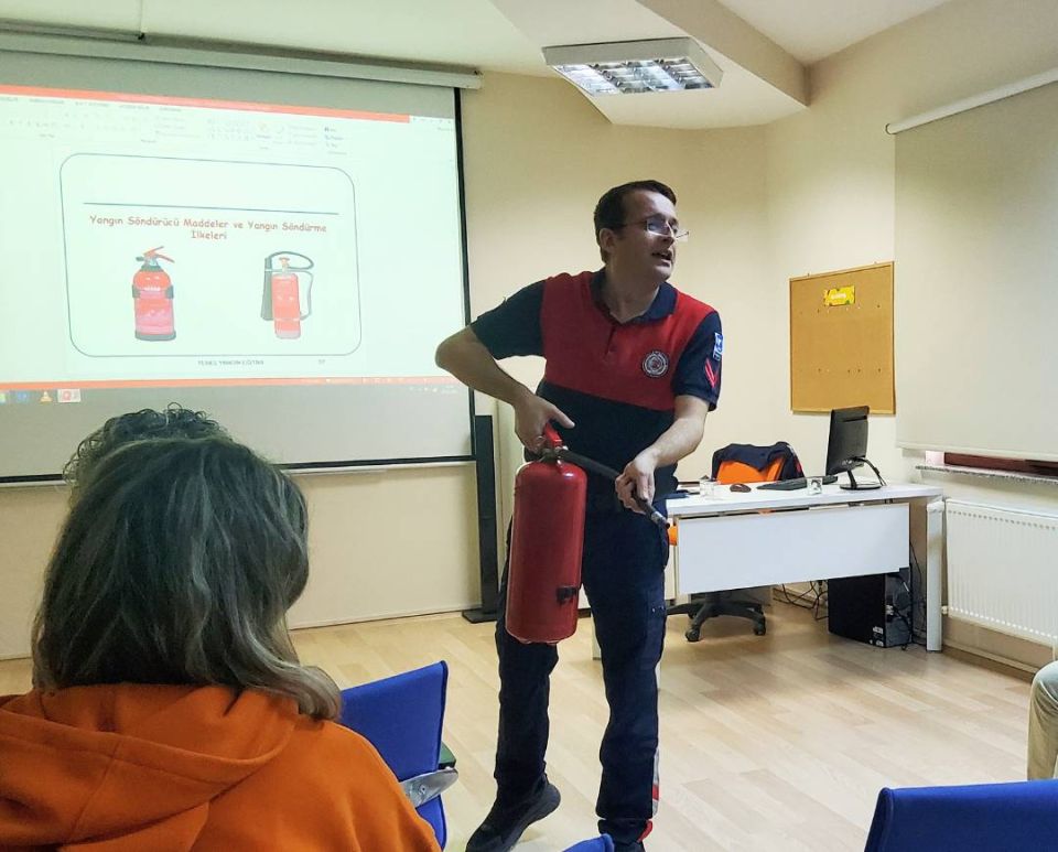 Program kapsamında gerçekleştirilen, “Temel Yangın Eğitimi” ile yangın nedir, yangın sınıfları, söndürme maddeleri ve cihazları, yangın güvenlik ekipleri ve önlemleri ile acil durum ekipleri ve hareket tarzı gibi önemli konular ele alındı. Çocuk Kültür Evi eğitmenlerinin ve personelinin ilgiyle takip ettiği eğitim, Çanakkale Belediyesi İtfaiye Müdürlüğü Eğitim Sorumlusu Selim Can tarafından gerçekleştirildi.