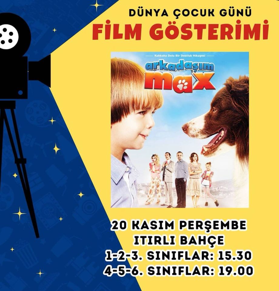 “Dünya Çocuk Günü kapsamında çocuklarımızı yönetmenliğini Murat Şeker’in yaptığı “Arkadaşım Max” filmini izlemeye davet ediyoruz. Çekimleri Bozcaada’da gerçekleşen ve 2013 yılında vizyona giren filmin gösterimi 20 Kasım Perşembe günü Itırlı Bahçe’de olacaktır.