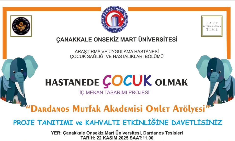 Projenin resmi lansmanı ve bağış etkinliği 22 Kasım 2025 Cumartesi günü saat 11.00’de ÇOMÜ Dardanos Tesislerinde gerçekleştirilecek. Dardanos Mutfak Akademisi öncülüğünde düzenlenecek etkinlikte “Omlet Atölyesi” ve kahvaltı programı yer alacak. Etkinlikten elde edilen tüm gelir, projenin uygulanmasında kullanılacak. Çocukların hastane deneyimini dönüştürmeyi hedefleyen bu anlamlı proje, Çanakkale’de büyük bir fark yaratmaya hazırlanıyor.