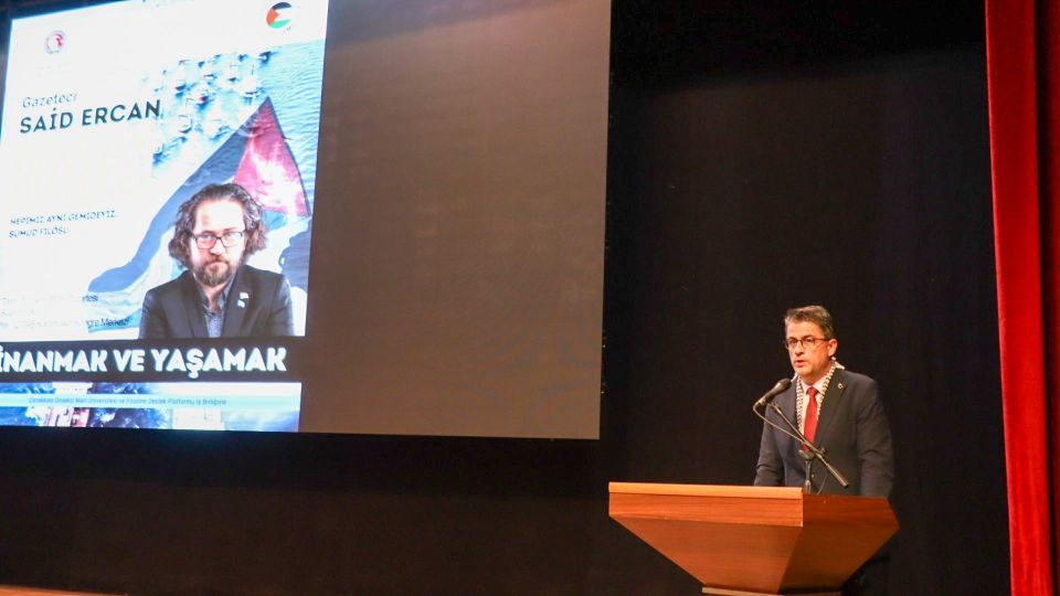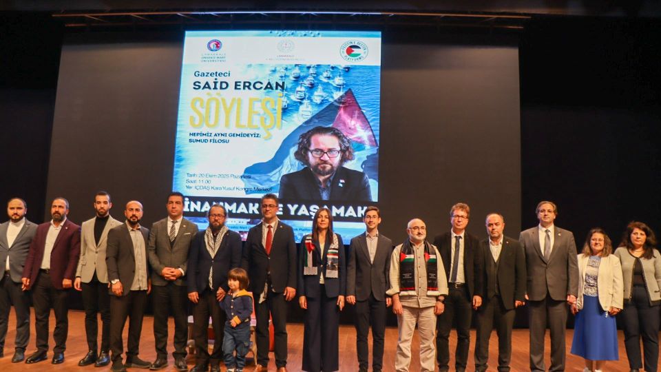 Çanakkale Onsekiz Mart Üniversitesi (ÇOMÜ), toplumsal dayanışma, umut ve direnişin önemine vurgu yapan anlamlı bir etkinliğe ev sahipliği yaptı. Gazeteci Said Ercan tarafından sunulan “İnanmak ve Yaşamak: Hepimiz Aynı Gemideyiz – Sumud Filosu” başlıklı söyleşi, İçdaş Kara Yusuf Kongre Merkezi’nde gerçekleştirildi.