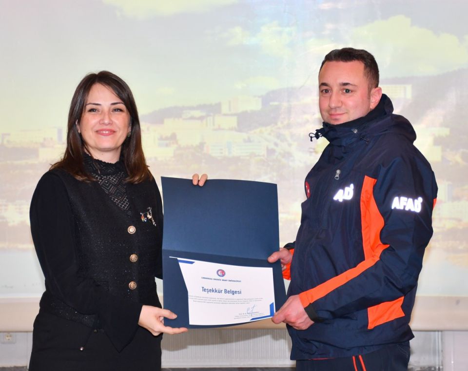 Program, protokol konuşmalarının ardından Çınarlı AFAD Lojistik ve Eğitim Merkezi’nde düzenlenen törende katkı sunanlara ödüllerin, ÇOMÜ Rektör Yardımcısı Prof. Dr. Evren Karayel Gökkaya tarafından takdim edilmesiyle sona erdi.