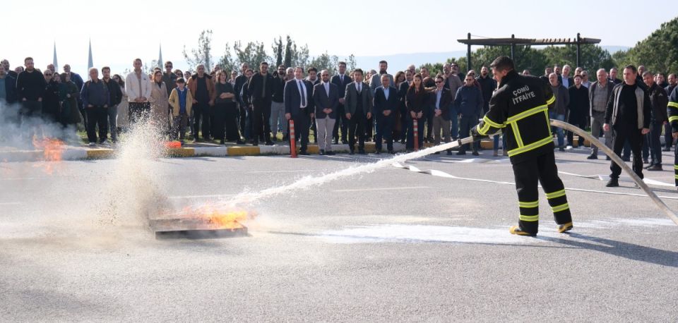 Eğitimin uygulama safhasında ise katılımcılar, uzman denetiminde güvenli bir alanda oluşturulan kontrolü yangına müdahale etti. Yangın söndürme ekipmanlarını bizzat kullanan üniversite personeli, alevlere doğru açıyla ve etkili bir şekilde müdahale etme becerisi kazandı.