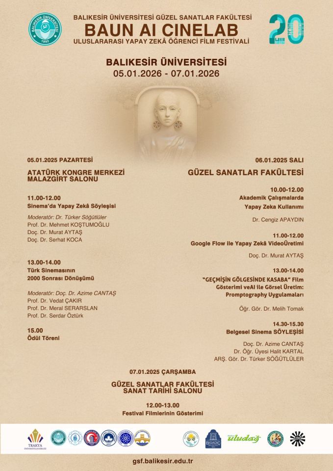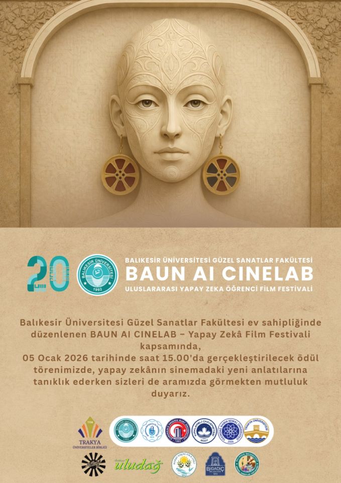 Yapay zekânın sinema sanatına etkileri, Balıkesir Üniversitesi ev sahipliğinde düzenlenen uluslararası bir festivalle mercek altına alınıyor. BAUN AI CINELAB – Uluslararası Yapay Zekâ Öğrenci Film Festivali, 05–07 Ocak 2026 tarihleri arasında Balıkesir’de sinema, sanat ve teknolojiyi aynı platformda buluşturuyor.