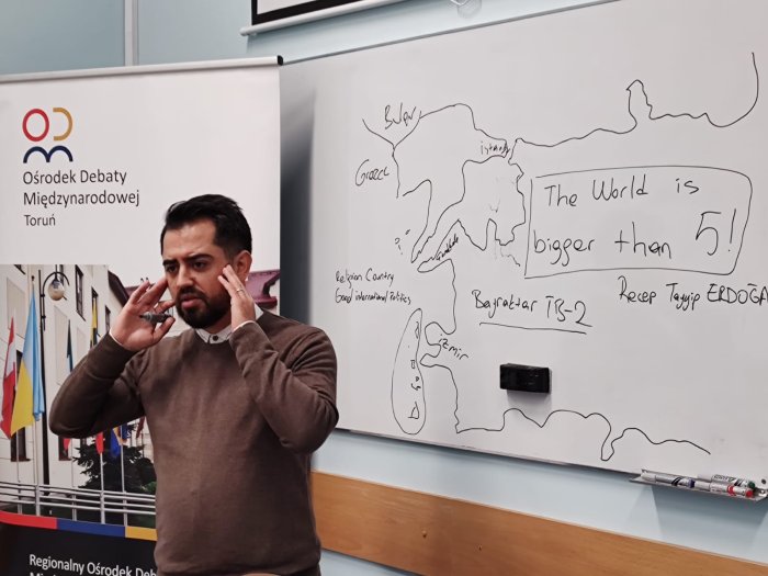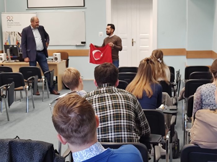 Erasmus+ ders verme hareketliliği kapsamında Polonya`nın Torun şehrinde The College of Social and Media Culture Üniversitesi`ne misafir öğretim elemanı olarak giden Öğr. Gör. Burak Balık, siyaset bilimi ile ilgili dersler verdi. Farklı sınıf ve öğrencilerle 8 ders saatinde bir araya gelen Öğr. Gör. Balık; ideolojiler, küresel problemler, Polonya-Türkiye ilişkileri, Türkiye dış politikasının temelleri konularında bilgi verdi. Türk Kültürü ve tarihi ile Türk Bayrağı`nın Türk halkı için anlamı ve kutsallığını Polonyalı öğrencilere anlatan Öğr. Gör. Balık, yanında götürdüğü Türk Bayrağı`nı da sınıfta açtı. Rektör Profesör Zdzislaw Klafka ile Erasmus Koordinatörü Dr.Krystian Cholaszczynski`yi ziyaret eden Balık, Çanakkale`yi tanıtan Çanakkale temalı hediyeleri; Rektör Klafka ile Koordinatör Cholaszczynski`ye takdim etti.