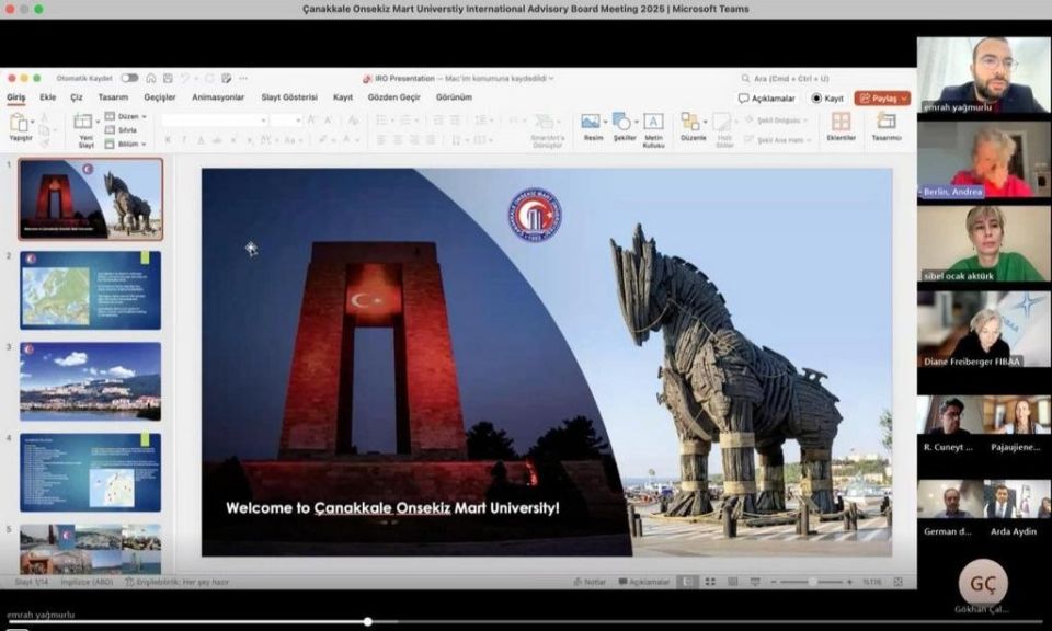 Çanakkale Onsekiz Mart Üniversitesi (ÇOMÜ), uluslararası yükseköğretim standartlarıyla uyumlu bir gelişim hedefi doğrultusunda önemli bir adım attı. Üniversite bünyesinde oluşturulan Uluslararası Danışma Kurulu, ilk toplantısını çevrim içi ortamda gerçekleştirerek ÇOMÜ üst yönetimi ile farklı ülkelerden alanında uzman akademisyenleri bir araya getirdi.