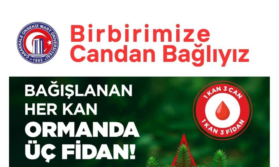 “Bir Kan, Üç Fidan” sloganıyla yürütülecek kampanyada, bağışlanan her ünite kan ile üç fidan toprakla buluşturulacak. Bu uygulama ile hem hayat kurtarılacak hem de çevreye katkı sağlanacak. ÇOMÜ, tüm personel ve öğrencilerini bu anlamlı iyilik hareketine katılmaya davet ederek, kan bağışıyla hem insan hayatına hem de doğaya katkıda bulunma çağrısında bulundu.