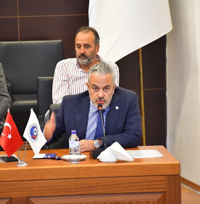 “Komite toplantılarından gelen kararlar diğer üyelerimizden aldığımız geri bildirimler ortak sorunlarımızın; finansmana erişim, küresel ekonomideki gelişmeler, Ortadoğu’nun karışıklığı olduğunu gösteriyor. Maalesef artık ekonomiye Trump faktörü diye bir kavram da girdi. Trump faktöründe ülke ekonomisini etkileyen durumlardan en fazla ve doğrudan etkilenen iş dünyası olarak bizleriz. Trump faktörünü şöyle özetleyelim. Burada OSB’de Amerika'ya banyo dolabı yapan mobilya ihraç eden şirket var. Bir günde %25 ekstra fon geldi. Dolayısıyla bir günde firmanın başka işi veya başka müşterisi yoksa alt üst oldu diyebiliriz. Osman Başkanımın dediği gibi “Enseyi karartmamamız lazım, önümüze bakmamız lazım.” Genelden yerele etki eden tüm zorluklara rağmen işimizin başında üretmeye, istihdamımızı korumaya devam ediyoruz. Her toplantımızın gündeminde enflasyon başta olmak üzere bu konular yerini koruyor.