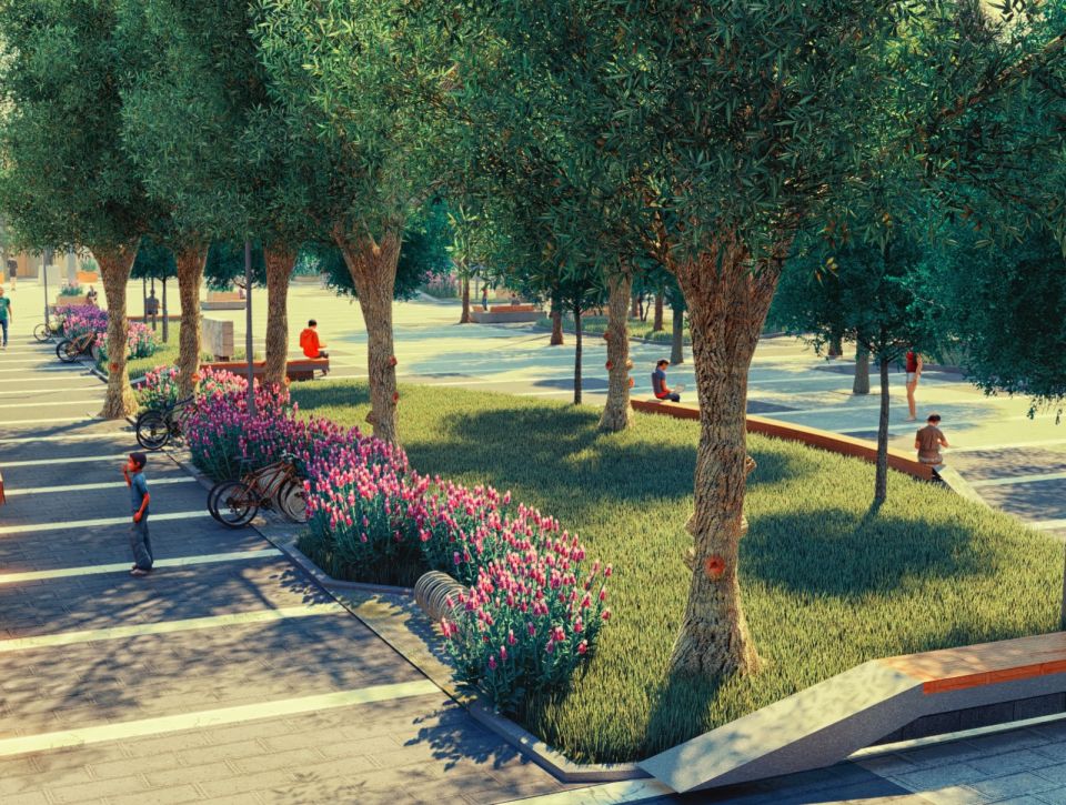 Mevcut ağaç dokusunun büyük ölçüde korunduğu projede, sert zemin ve yeşil alan dengesi kentsel etkinliklere olanak tanıyacak şekilde tasarlandı.