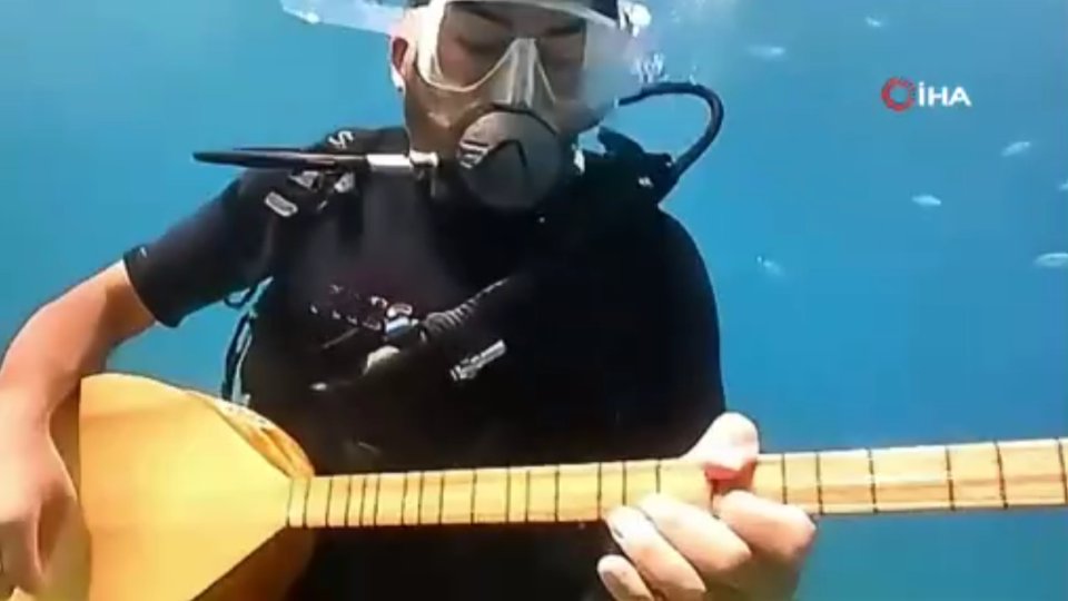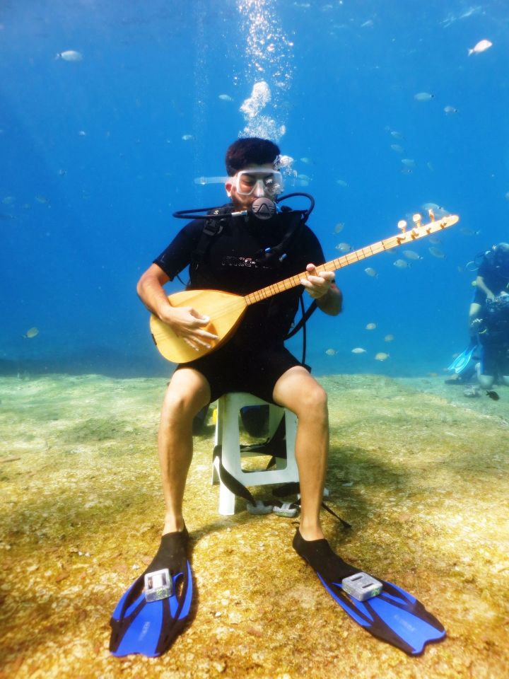 Fethiye Dalış Merkezi’ne başvuran Türk Halk Müziği sanatçısı Yunus Koşar, tüplü dalış yapmak istedi. Koşar, Dalyan koyunda 5 metre derine dalış eğitmeni Önder Diktaş ile inip, sazı ile deniz dibinde tabureye oturup Neşet Ertaş'a ait' Halime Kız’ türküsünü çalıp söyledi. Adeta balıklara müzik ziyafeti çeken sanatçı Yunus Koşar, bugüne kadar yapmak istediği hayaline kavuştuğu için mutlu olduğunu belirtti.