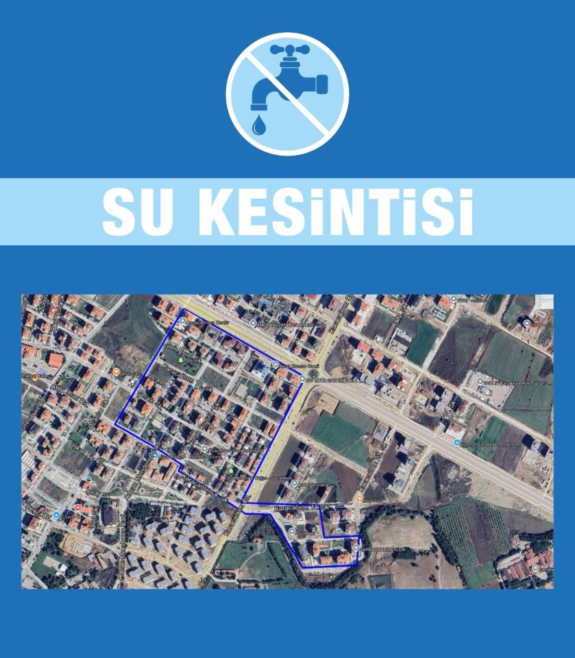 "Esenler Mahallesi Karacaören 4. Sokak üzerinde TOKİ’ye ait içme suyu bağlantıları ve içme suyu debimetre odası bağlantıları yapılacak olup ekli krokide belirtilen alanda 25 Eylül 2025 Perşembe günü 23.00-03.00 saatleri arasında su kesintisi yaşanacaktır."