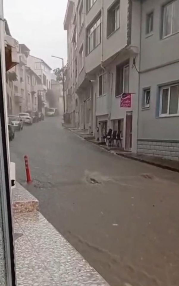 Lapseki'de sağanak yağış hayatı olumsuz etkiledi. Ana artellerin