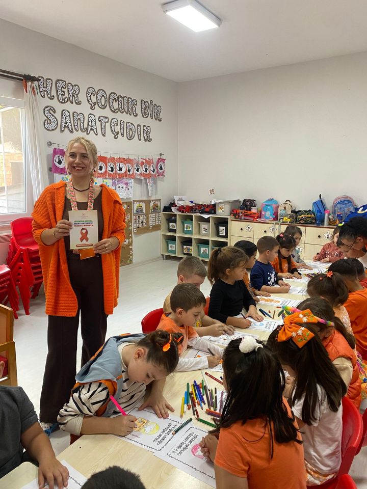 Minikler etkinlikte turuncu renk kıyafetler giyerek boyama çalışmaları yaptı ve turuncu el baskısı ile lösemi farkındalığına katkıda bulundu. Etkinlikte ayrıca, lösemiyi yenmiş bir ortaokul öğrencisi de yer alarak, azmi ve gülüşüyle küçük katılımcılara ilham kaynağı oldu.