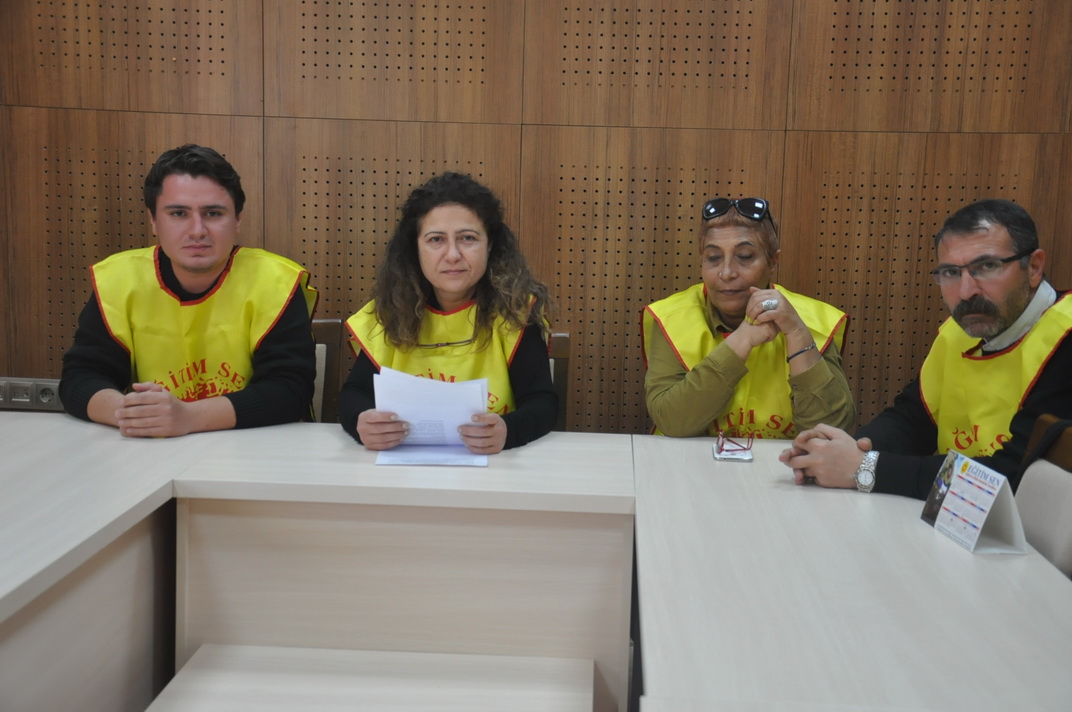 Eğitim Sen Çanakkale Yönetim Kurulu tarafından, ‘sendikal eylemlere katıldığı’ gerekçesi ile 9 Kasım 2017 tarihinde gözaltına alınan ve 4 günlük gözaltı sürecinin ardından çıkartıldığı mahkemece serbest bırakılan Sendika Yürütme Kurulu Eğitim Sekreteri Burak Efeyurtlu’nun aradan 4.5 ay geçmesine rağmen hala görevine dönemediği gerekçesi ile basın açıklaması yapıldı. Efeyurtlu’nun 4 günlük gözaltı sürecinin ardından çıkartıldığı mahkeme tarafından hakkında; ‘Söz konusu eylemlerin sendikal eylem olduğu, evinde bulunan kitapların hiç birinin yasaklı olmadığı, attığı sloganların hiç birinde terörü destekleyici unsur bulunmadığı’ kararı verilerek serbest bırakılmasına rağmen, Bayramiç Kaymakamlığı ve İlçe Milli Eğitim Müdürlüğü ile yapılan görüşmelerde, ‘müfettiş raporu hazırlandığı’ açıklamasının yapıldığı belirtildi. Aradan 4,5 ay geçmesine rağmen Efeyurtlu’nun göreve iade edilmemesinin ‘Anayasaya, uluslararası hukuka, ulusal ve uluslararası yargı kararlarına aykırı olduğu belirtilen açıklamada, Efeyurtlu tarafından, Bayramiç Kaymakamlığı hakkında işe iade davası açıldığı belirtildi. Eğitim Sen Şube Başkanı Filiz Savaş tarafından yapılan açıklamada; “15 Temmuz darbe girişimi sonrasında KHK lar ile Eğitim Sen Çanakkale Şubesi olarak 5 üyemiz açığa alınmış ve aylar sonra bahsi geçen örgüt ile hiç bir bağlarının olmadığı görülerek görevlerine iade edilmişlerdir. O süreçte, Eğitim Sen üyelerinin terör örgütüyle ilgisinin olamayacağını, aksine bu örgütlerle kurulduğumuz tarihten beri mücadele ettiğimizi belirtmekle birlikte inceleme-soruşturma sürecinin ardından da haklılığımız ispat edilmiştir. FETÖ bahanesiyle açığa alınıp üç ay sonra iade edilen üyelerimizden olan Burak Efeyurtlu ise başka bir mesnetsiz iddia ile tekrar açığa alınmıştır. Bir yıldır sendikamızın yürütme kurulunda görev alan Burak öğretmenimiz bir sendika yöneticisi olarak en doğal hakkı olan sendikal eylemlere katıldığı ve bu eylemlerde slogan attırdığı suçlamasıyla başka bir terör örgütüyle ilişkilendirilerek 9 Kasım 2017 tarihinde evinde yapılan aramayla gözaltına alınmıştır. 4 gün süren gözaltının ardından mahkemeye sevk edilen arkadaşımız hakim tarafından; “söz konusu eylemlerin sendikal eylem olduğu, evinde bulunan kitapların hiç birinin yasaklı olmadığı, attığı sloganların hiç birinde terörü destekleyici unsur bulunmadığı” açıklaması ile serbest bırakılmıştır” denildi.