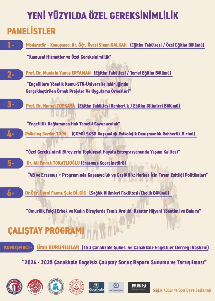 Etkinliğin ikinci bölümünde, TSD Çanakkale Şube Başkanı Ümit Burunlular tarafından 2024–2025 Engelsiz Çanakkale Çalıştay Sonuç Raporu sunulacak ve katılımcılarla birlikte tartışılacak. Engelli bireylerin yaşam kalitesini artırmaya yönelik politika, uygulama önerileri ve çözüm yollarının masaya yatırılacağı çalıştayın, Çanakkale’de kapsayıcı yaşam vizyonuna önemli katkı sunması hedeflendi.