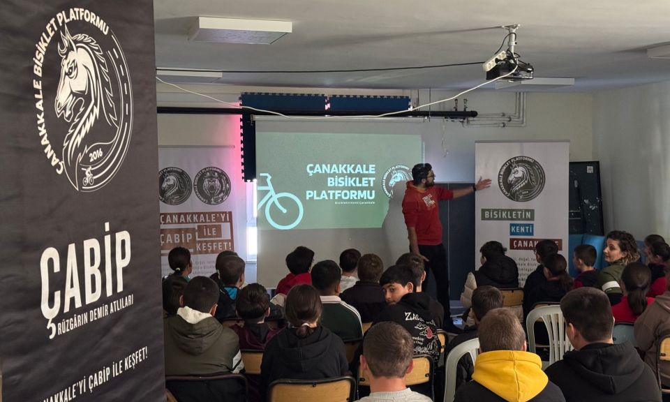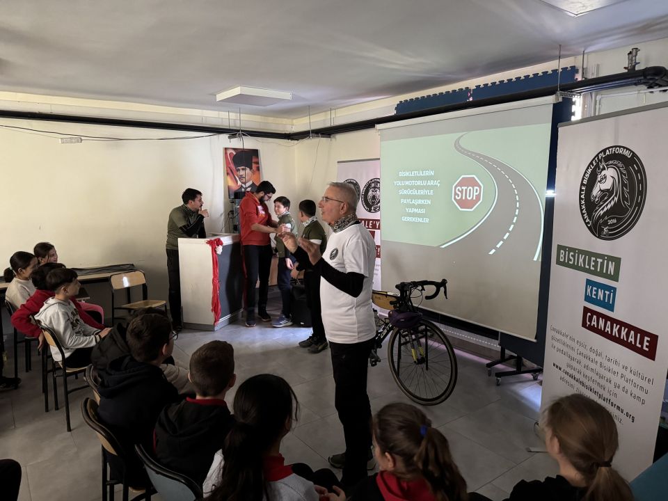 Çanakkale Bisiklet Platformu (ÇABİP), “Bisikletin Kenti Çanakkale” mottosu kapsamında Erenköy İlkokulu ve Ortaokulu’nda anlamlı bir etkinliğe imza attı. Öğrencilerin yoğun ilgi gösterdiği programda, bisiklet bilinci ve güvenli sürüş konularında farkındalık oluşturuldu.