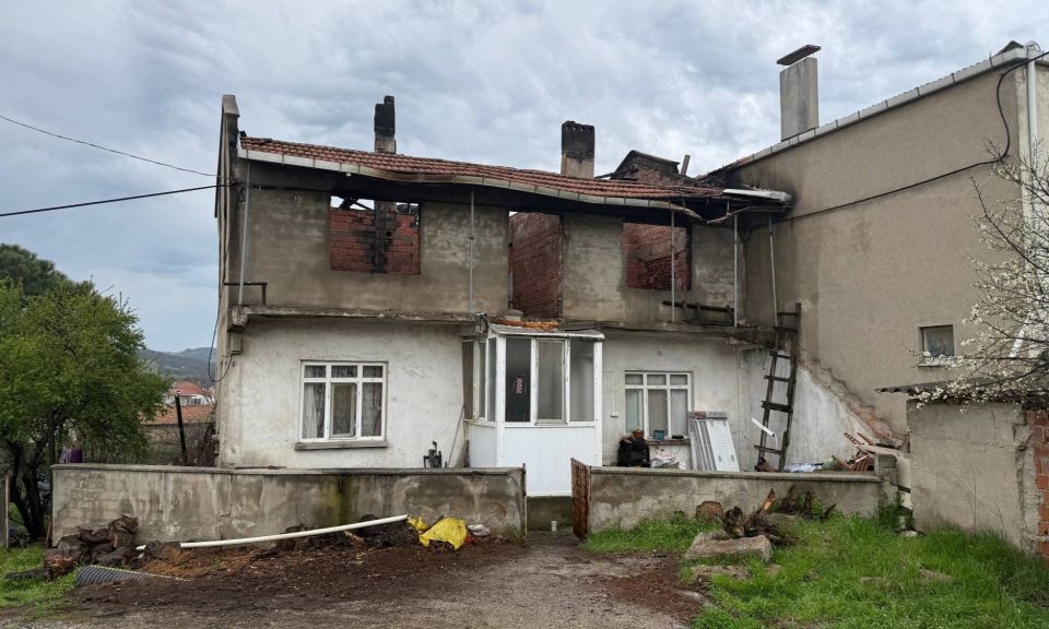 çatı katını ve boş olan 2'nci katta bulunan eşyaları küle