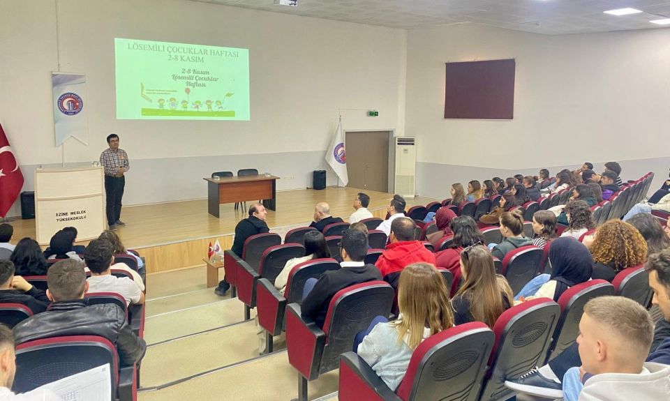 2-8 Kasım Lösemili Çocuklar Haftası kapsamında Ezine İlçe Sağlık Müdürlüğü Sağlıklı Hayat Merkezinde görevli Halk Sağlığı Uzm. Dr. Ali Can Korkmaz ve Psikolog Yusuf Alperen Tuzcu tarafından Ezine Meslek Yüksekokulu öğrencilerine Lösemi (Kan Kanseri) ve Kansere Yaklaşım konusunda eğitimler verildi.