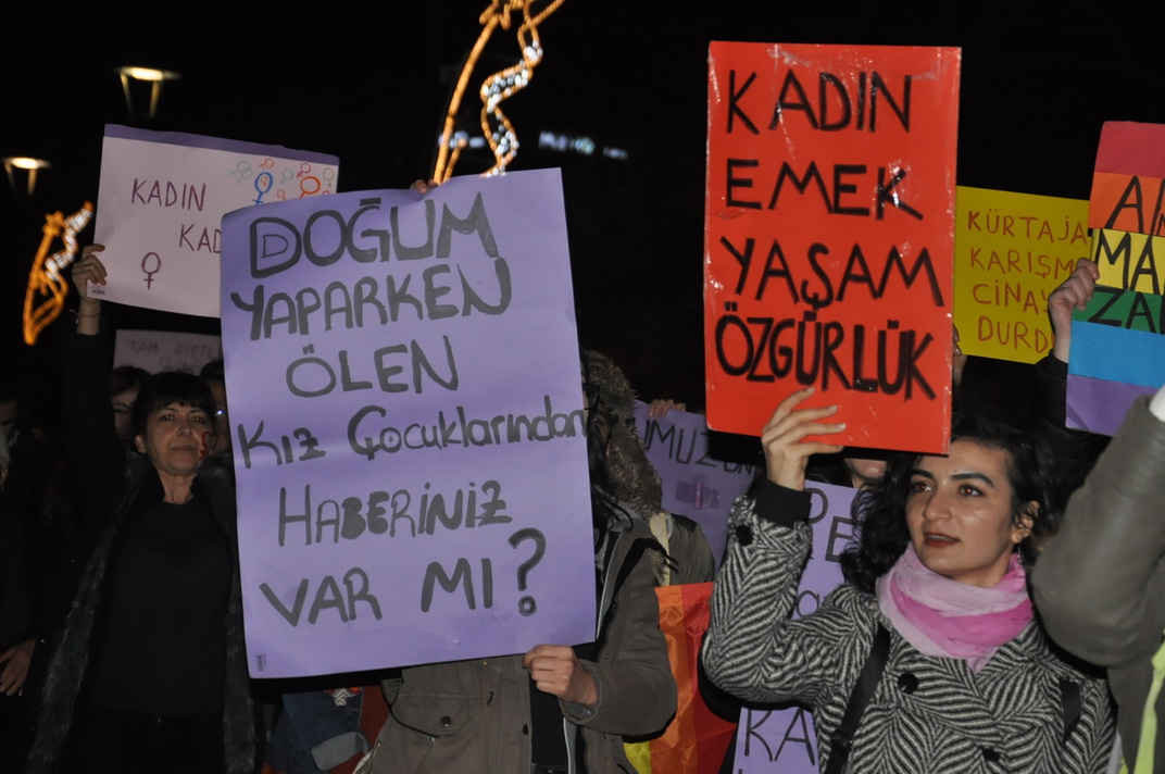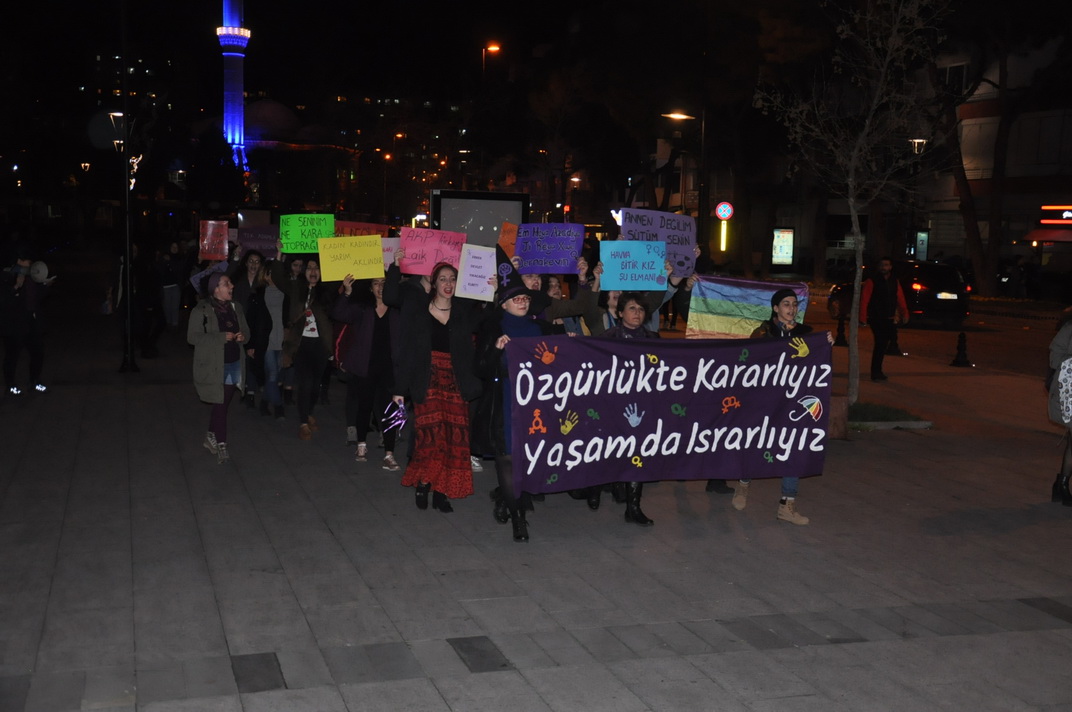 Çanakkaleli feminist kadınlar, 8 Mart Dünya Emekçi Kadınlar Günü nedeniyle gece yürüyüşü düzenlediler. Golf Aile Çay Bahçesi önünde toplanan feminist kadınlar, saat 21,00 sıralarında yürüyüşlerine başladılar. Önceki gün yapılan yürüyüşe yüzlerce feminist kadın destek verdi. Yürüyüş, kordon boyu sloganlarla ve şarkılarla sürerken Çanakkale’nin sık kullanılan çay bahçesi Şakir’in Yeri’nde yapılan basın açıklaması ile sona erdi. Burada yapılan basın açıklamasında, kadınlara yönelik şiddet, baskı ve LGBT’lilerin varlığına tahammül edilmediği öne çıkarıldı. Kadınların doğurganlık haklarına ve yaşam haklarına yapılan saldırıların türlü yolların denendiği belirtilen basın açıklamasında; “Dünyanın dört bir yani yükselen muhafazakârlık ve kadın düşmanlığı kıskacında. Savaş çığlıkları atılıyor, yabancı düşmanlığı her gün artıyor. Kadınların doğurganlık haklarına yaşam haklarına saldırıların türlü yolları deneniyor, LGBT’lerin varlığına tahammül edilmiyor. Hayatımızın ortasına kadar girmiş, her alanı kaplayan bir Diyanet var devasa bütçesi ve yetkisiyle. Bütçe diyanete ve savaşa akadursun, evde ve iste emeğimiz sömürülüyor, üç kuruşa bakim hizmetlerini yapmaya mecbur bırakılıyoruz.