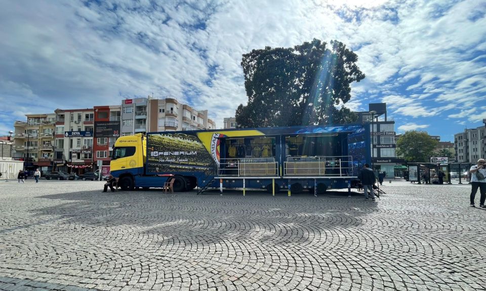 Fenerium tırının sıradaki durağı Çanakkale İskele Meydanı oldu. Lisanslı Fenerbahçe ürünlerinden geniş bir yelpaze bulunan tırda şapkadan atkıya, formadan tişörte kadar bir çok ürün İskele Meydanı'ndaki Manolya ağacının önünde taraftarların beğenisine sunuluyor.