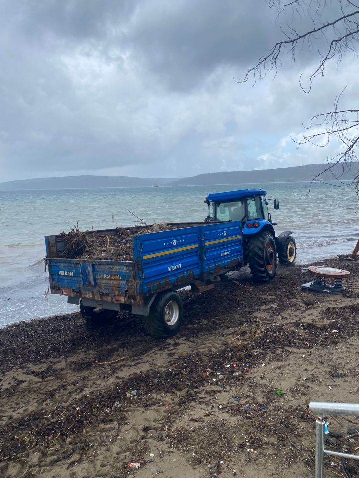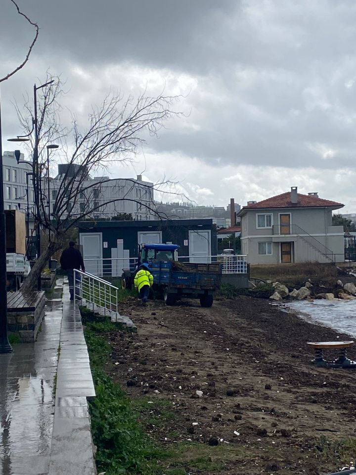 Çanakkale il ve ilçe merkezlerindeki yoğun yağış ve sert rüzgârın etkisiyle taşan deniz nedeniyle atıklar kıyıya sürüklenmiş çevredeki ağaçlar hasar görmüştü.