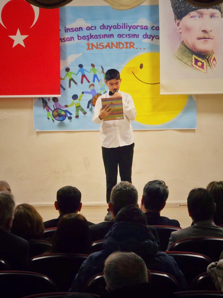 Programda öğrenciler tarafından seslendirilen şiirler duygusal anlar yaşatırken, müzik dinletisi ve koro performansları salonda sıcak bir atmosfer yarattı. Halk oyunları gösterisi ise izleyicilerden büyük alkış aldı. Etkinlik boyunca verilen mesajlarda, 3 Aralık’ın yalnızca bir farkındalık günü değil; toplumda empatiyi güçlendiren ve engelleri ortadan kaldırmayı amaçlayan özel bir gün olduğu yeniden hatırlatıldı.