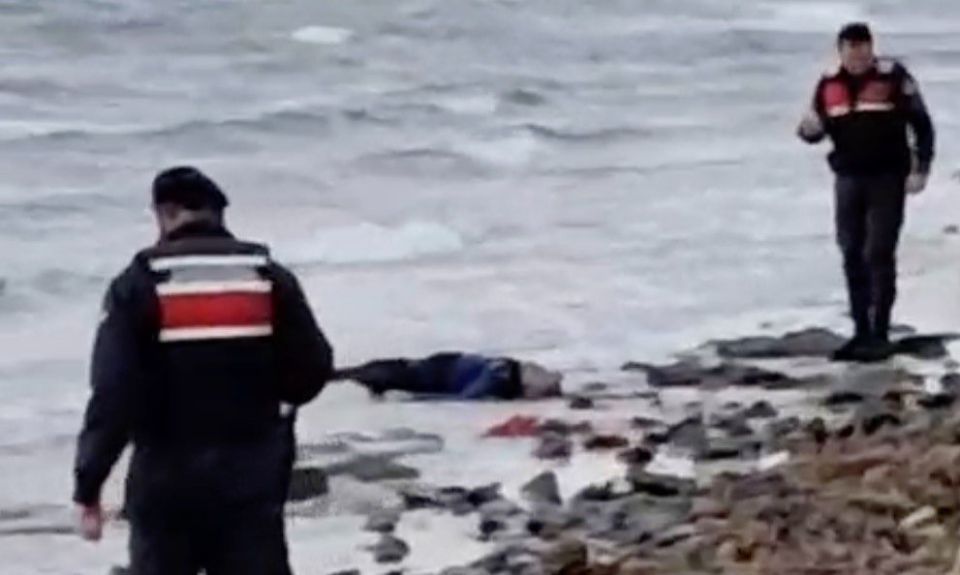 yaptığı incelemeler sırasında kıyıya vuran Mustafa Yaldızlı ve