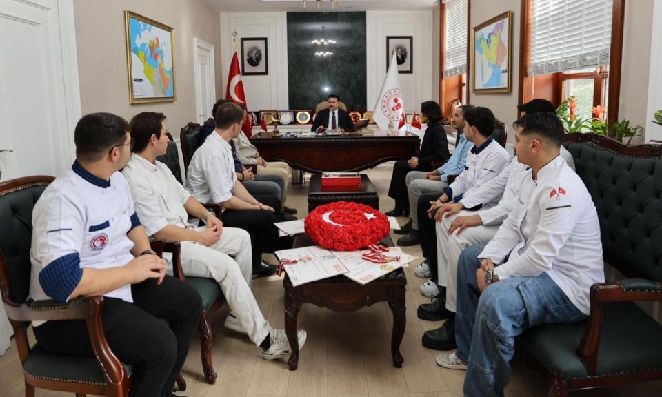 Çanakkale Onsekiz Mart Üniversitesi Gökçeada Uygulamalı Bilimler Yüksekokulu Gastronomi ve Mutfak Sanatları Bölümü öğrencileri ve akademik kadrosu, GastroAntalya’da elde ettikleri önemli başarıların ardından Kaymakam Osman Acar’ı makamında ziyaret etti. Ziyarete Yüksekokul Müdürü Dr. Öğr. Üyesi Hande Kadur Arslan, Bölüm Başkanı Öğr. Gör. Özkan Yazar, Arş. Gör. Necati Karakaş ve yarışmada derece alan öğrenciler katıldı.