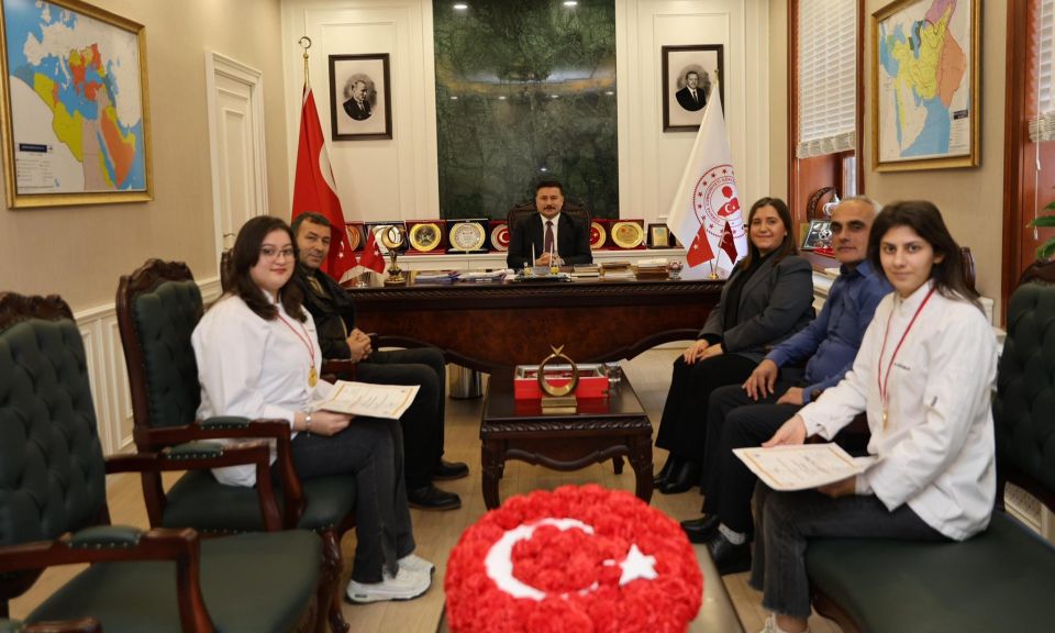 Uluslararası Gastronomi Festivali kapsamında TAŞFED Federasyonu tarafından düzenlenen gastronomi yarışmasında önemli bir başarıya imza atan Çanakkale Onsekiz Mart Üniversitesi Gökçeada Meslek Yüksekokulu Otel, Lokanta ve İkram Hizmetleri Bölümü öğrencileri, öğretim görevlileriyle birlikte Gökçeada Kaymakamı Sayın Osman Acar’ı makamında ziyaret etti.